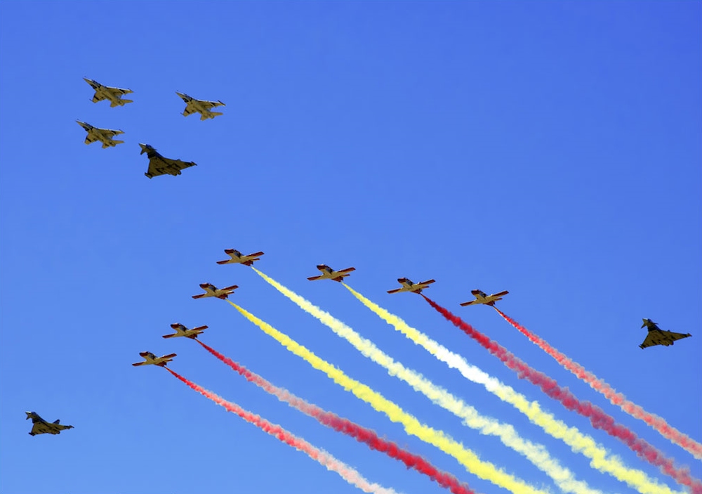 La Patrulla Águila en formación con Eurofighter y Mirage F-1.