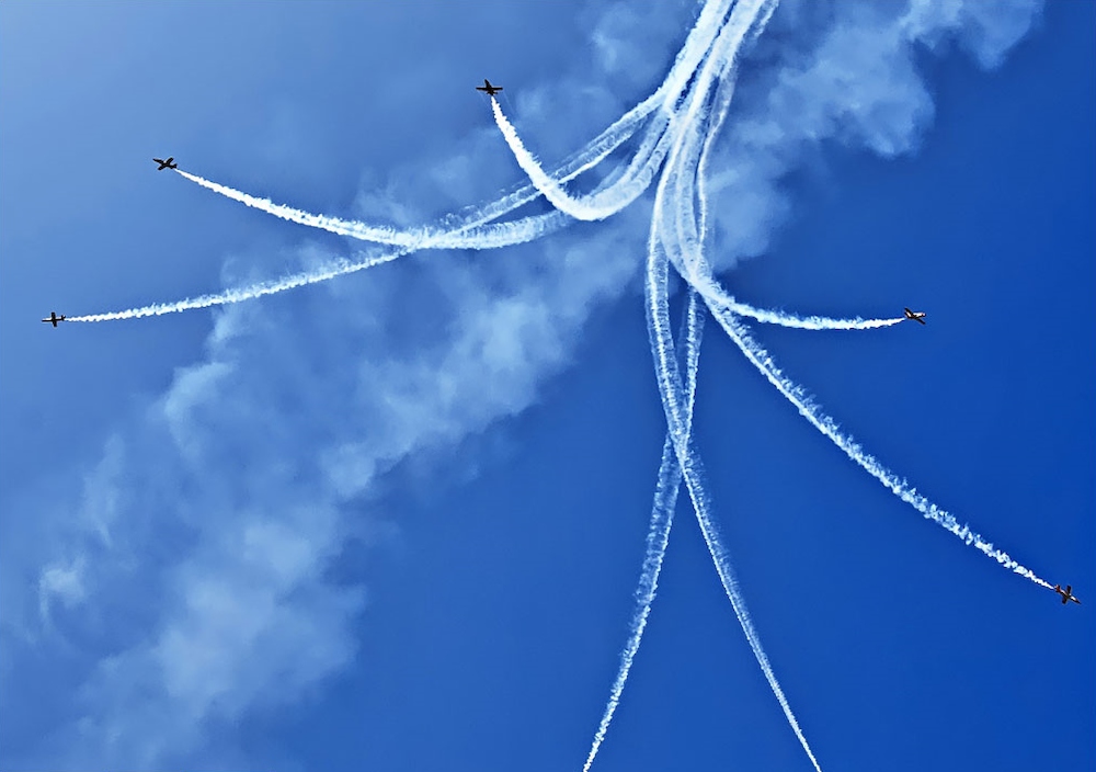 Caída del looping en formación Póker desde la cabina del Águila 7.