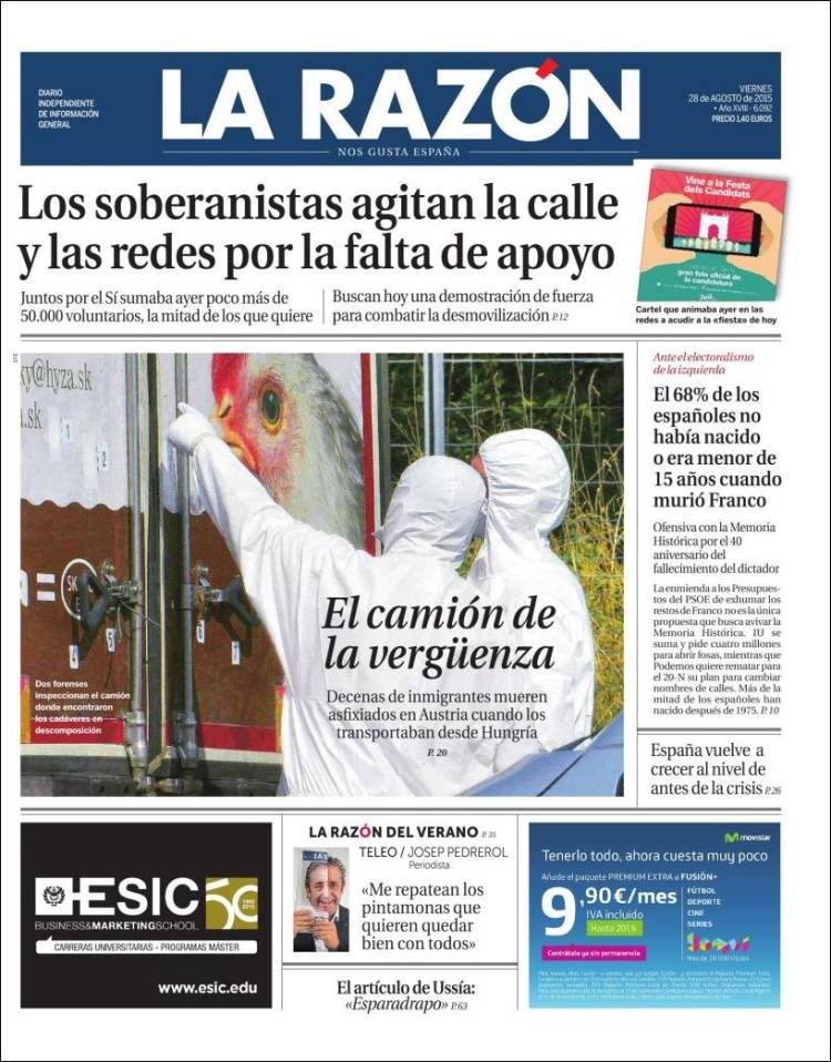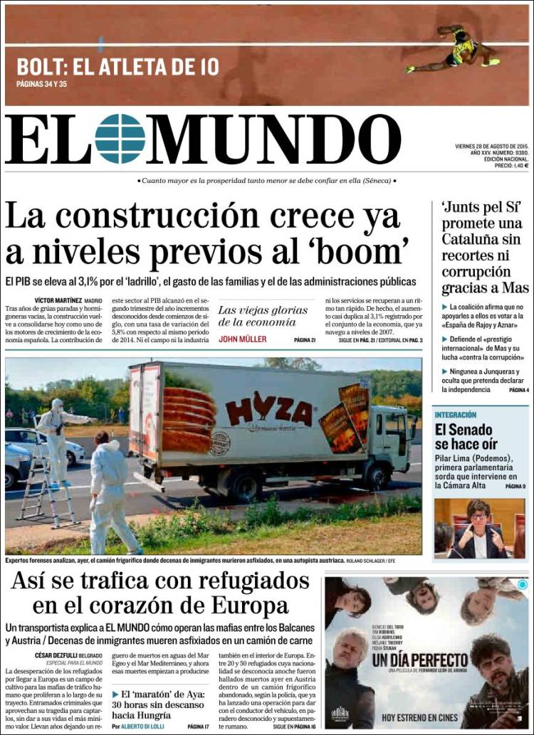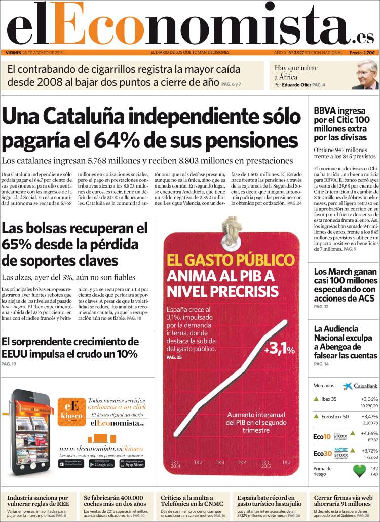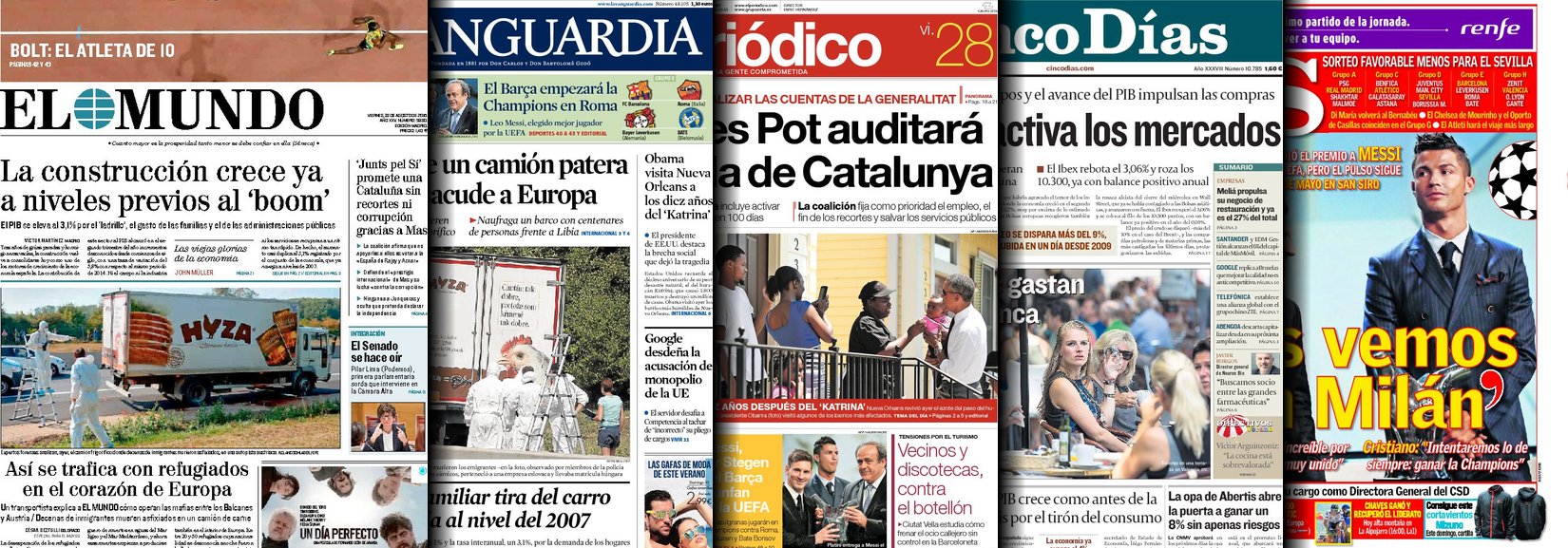 Portadas de los diarios El Mundo, El País, ABC, La Razón, La Vanguardia, El Periódico, Cinco Días, El Economista, Expansión, Marca, As, Mundo Deportivo y Sport.