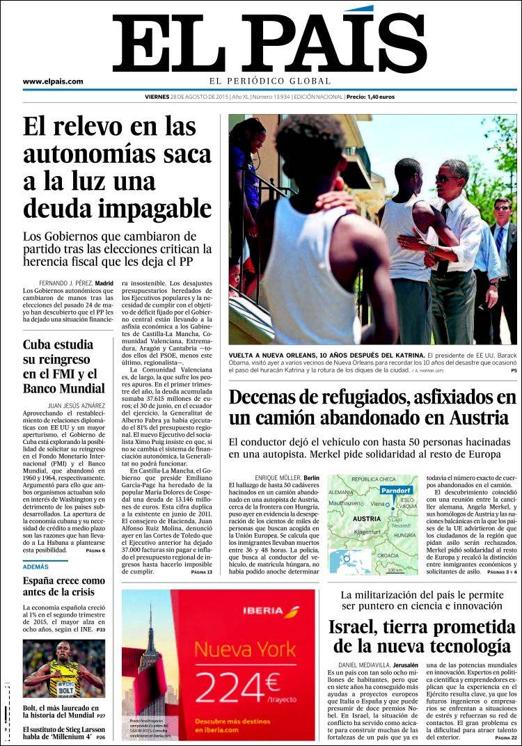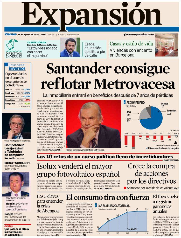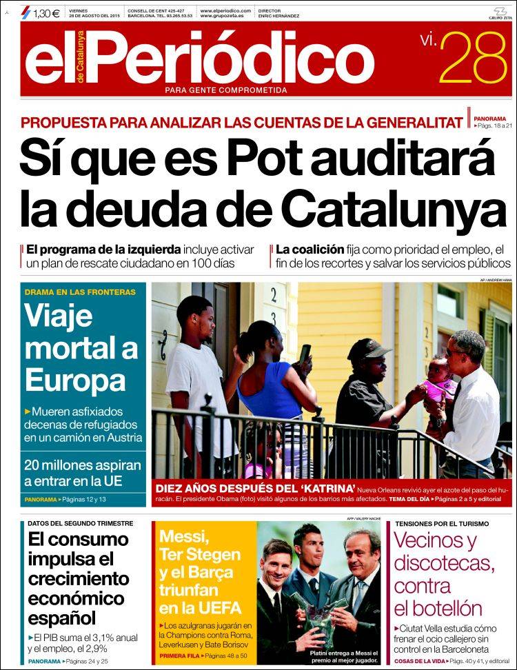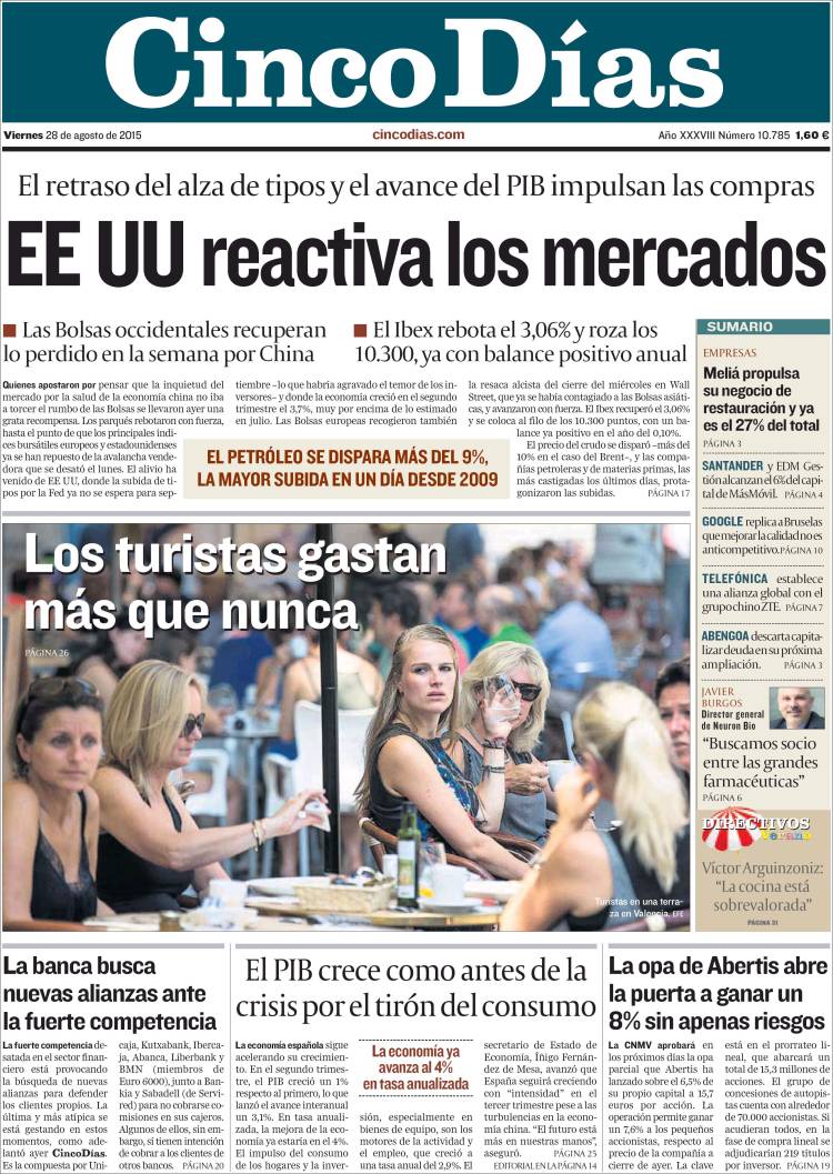Portadas de los diarios El Mundo, El País, ABC, La Razón, La Vanguardia, El Periódico, Cinco Días, El Economista, Expansión, Marca, As, Mundo Deportivo y Sport.
