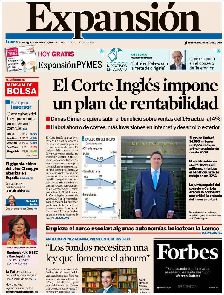 "El Corte Inglés crece por primera vez desde 2008 e irá a América"