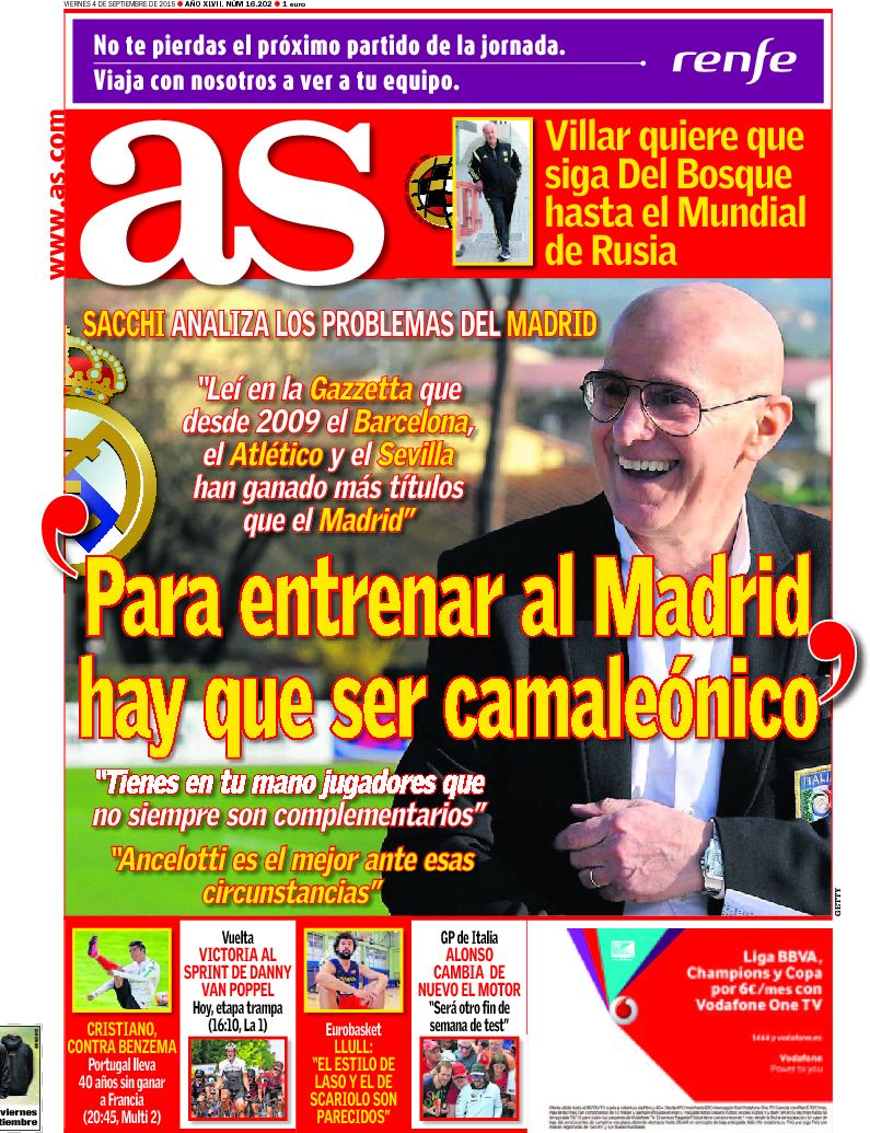 Portadas de los diarios ABC, As, El Periódico y La Vanguardia.