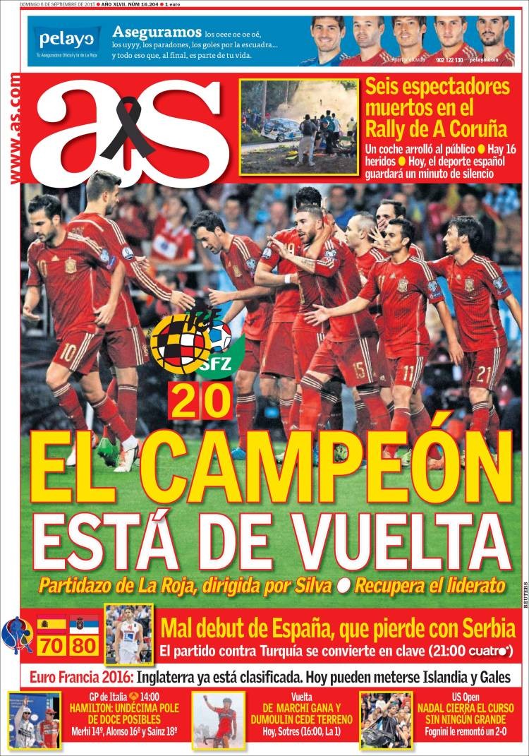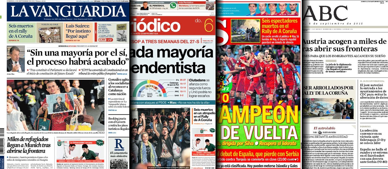 Portadas de los diarios ABC, As, El Periódico y La Vanguardia.
