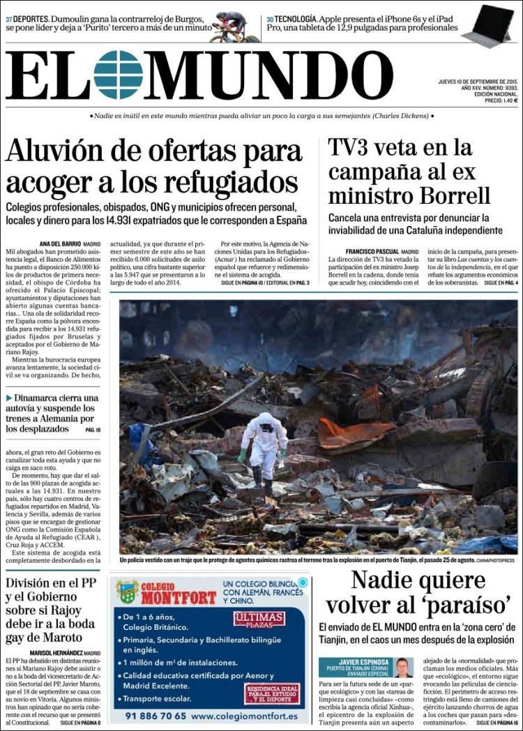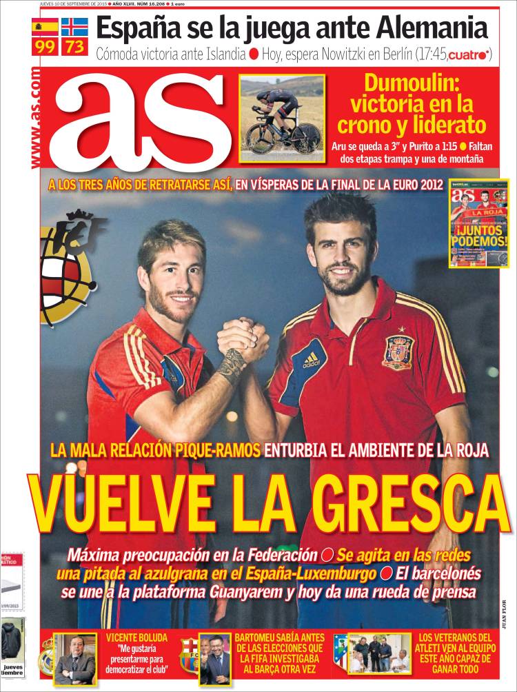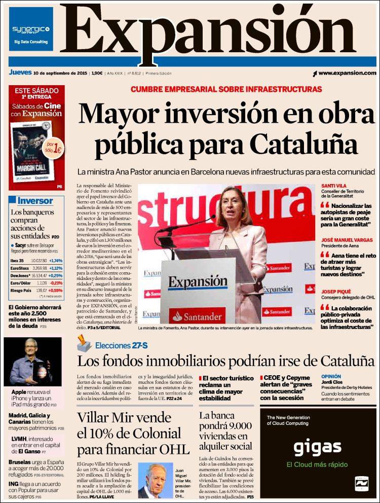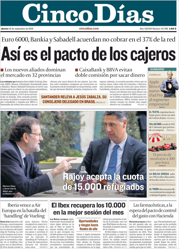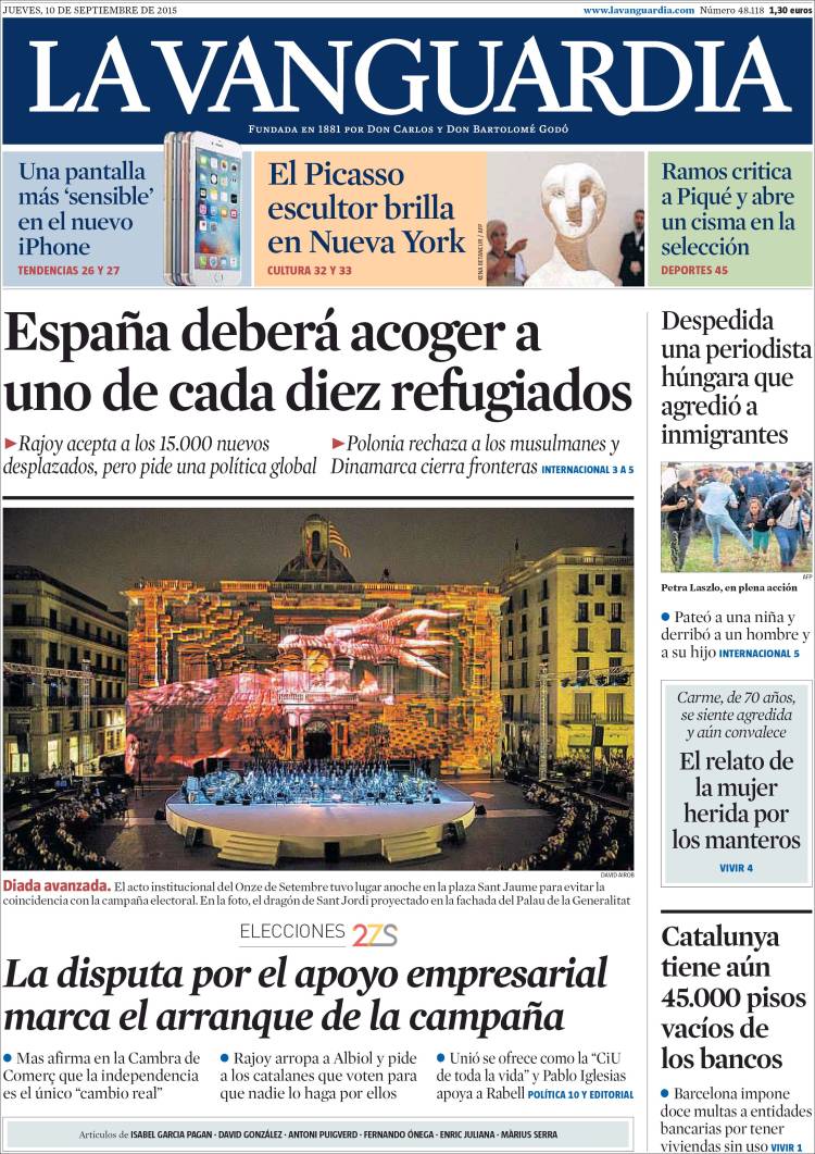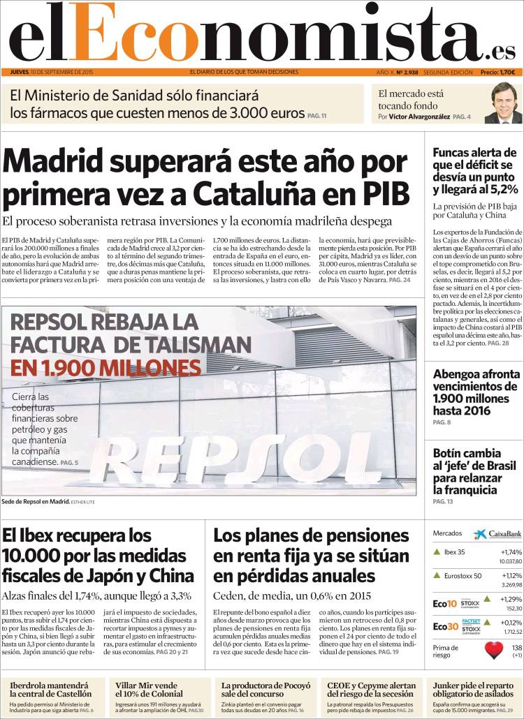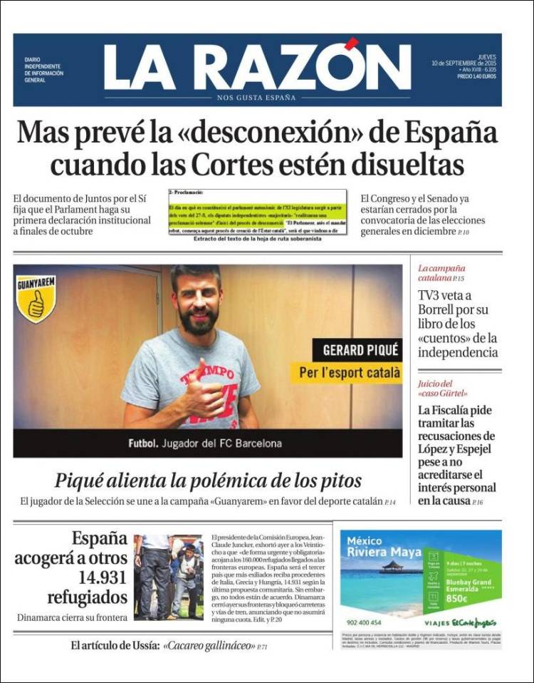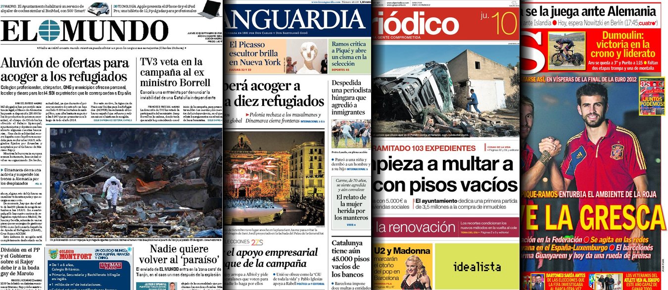 Portadas de los diarios El Mundo, El País, ABC, La Razón, La Vanguardia, El Periódico, Cinco Días, El Economista, Expansión, Marca, As, Mundo Deportivo y Sport.
