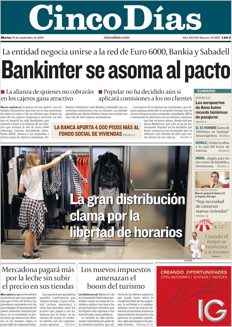Portadas de los diarios El Mundo, El País, ABC, La Razón, La Vanguardia, El Periódico, Cinco Días, El Economista, Expansión, Marca, As, Mundo Deportivo y Sport.
