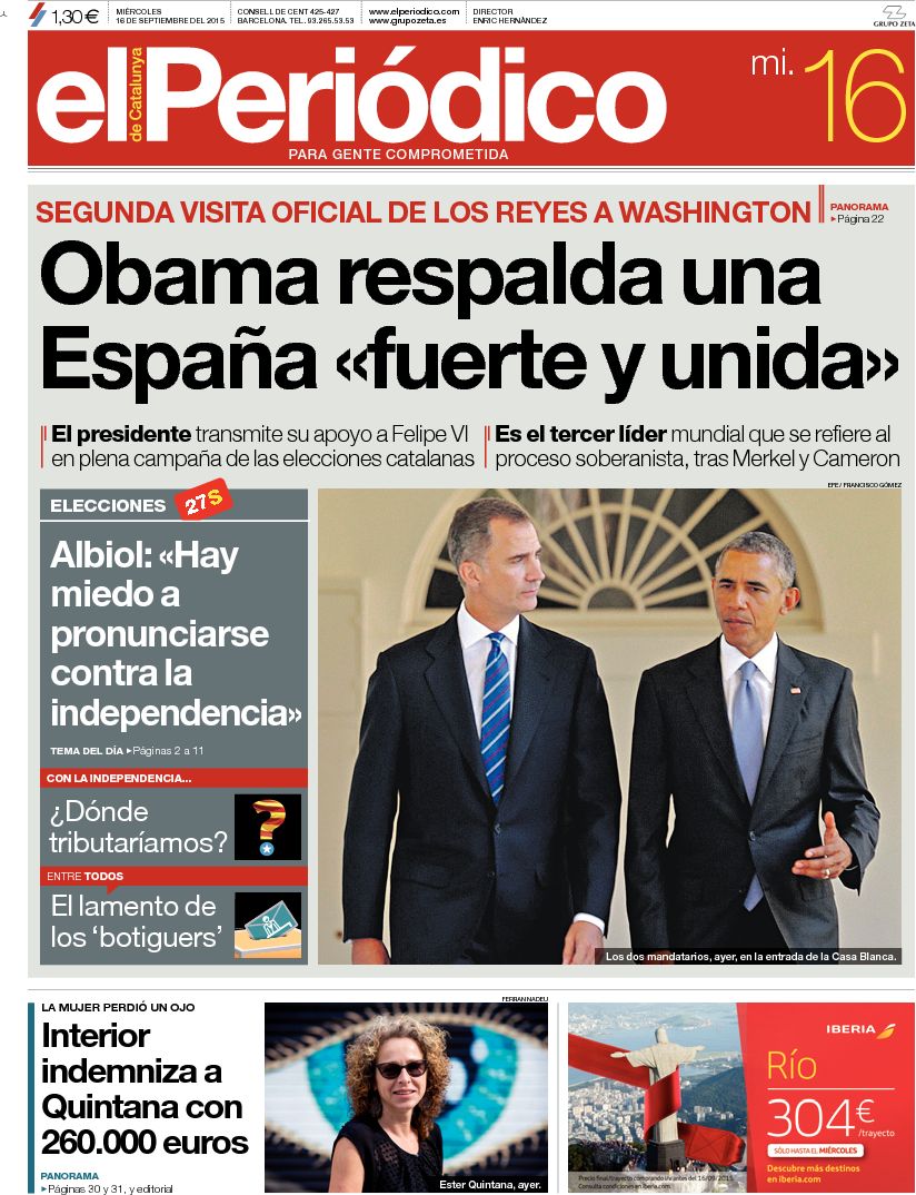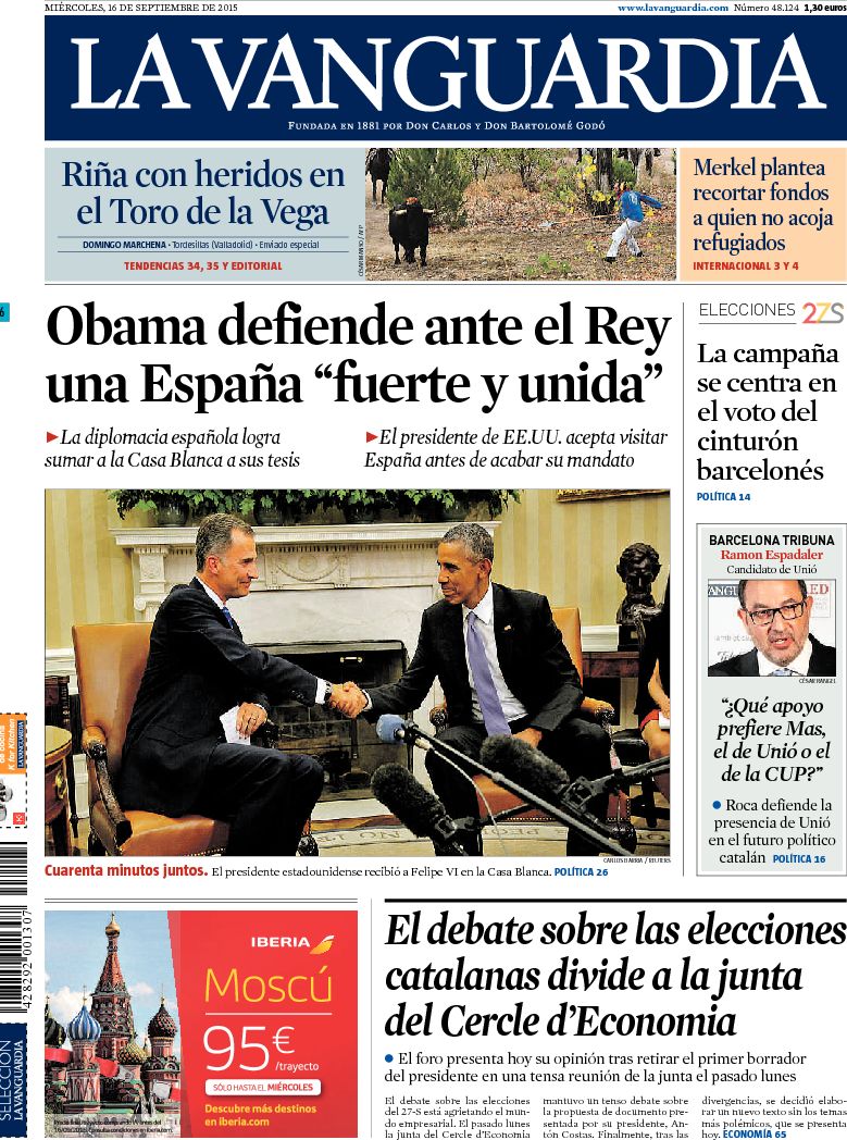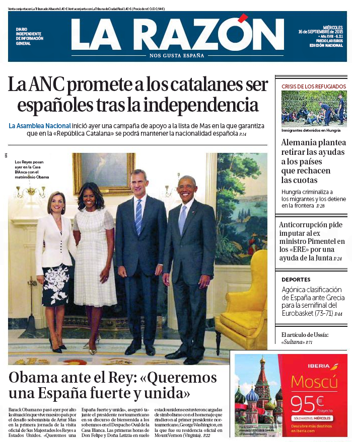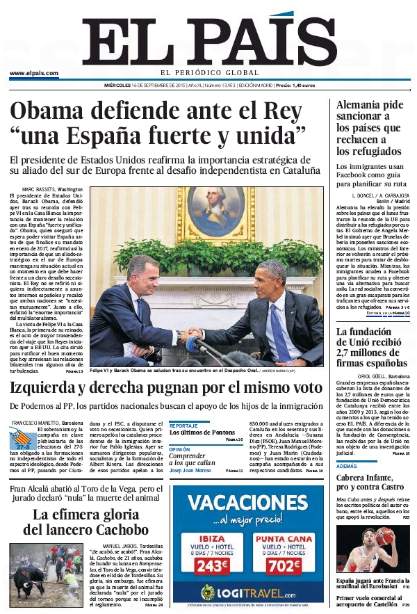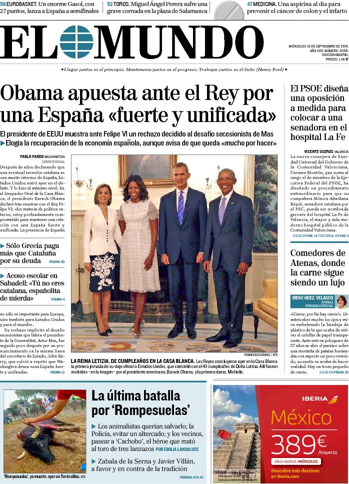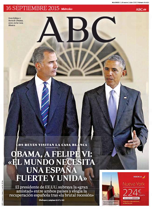 "Obama, a Felipe VI: 'El mundo necesita una España fuerte y unida'"