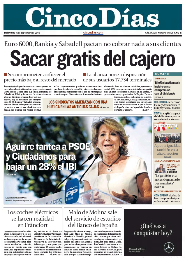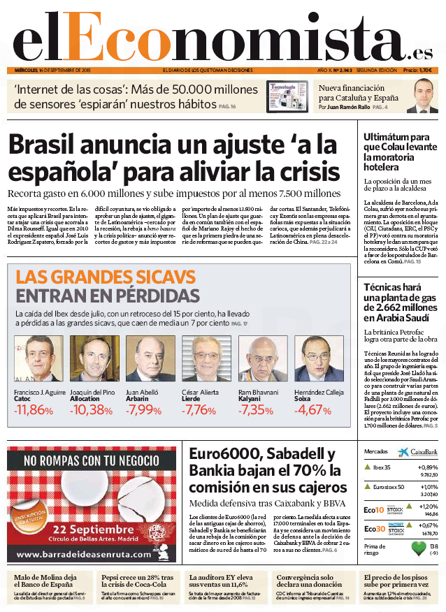 Portadas de los diarios El Mundo, El País, ABC, La Razón, La Vanguardia, El Periódico, Cinco Días, El Economista, Expansión y As