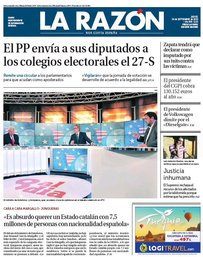 "El PP envía a sus diputados a los colegios electorales el 27-S"