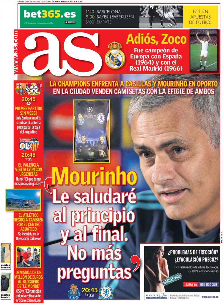 "Mourinho: 'Le saludaré al principio y al final. No hay más preguntas'"