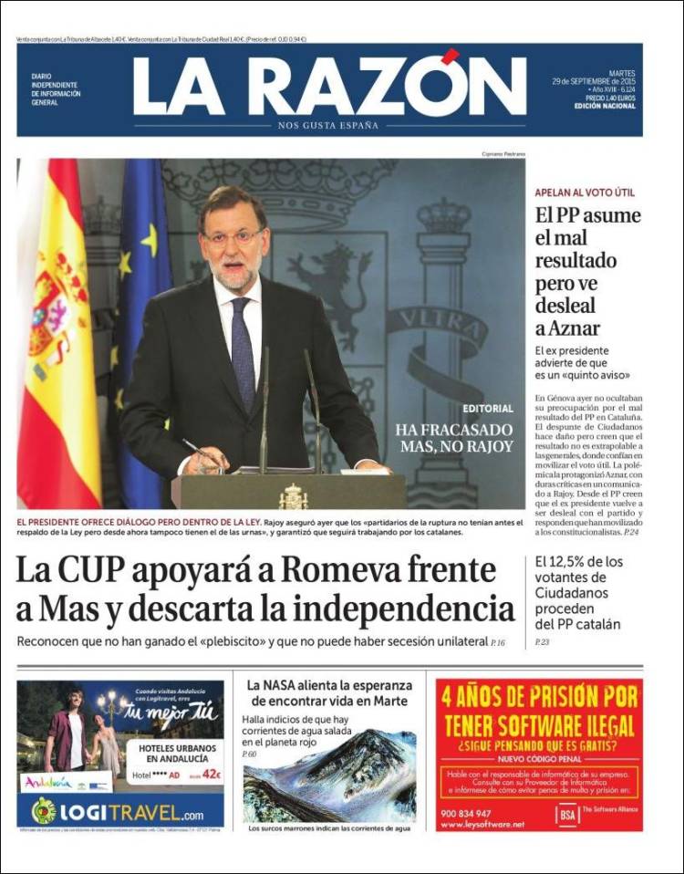 "Rajoy y Mas se enrocan en sus posturas tras el duelo electoral"
