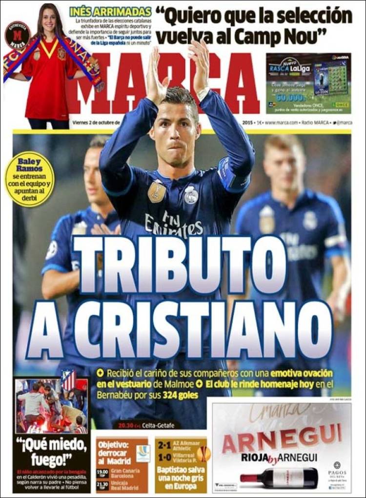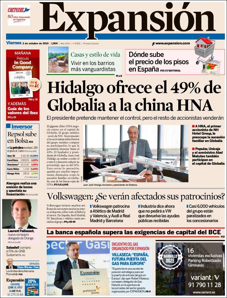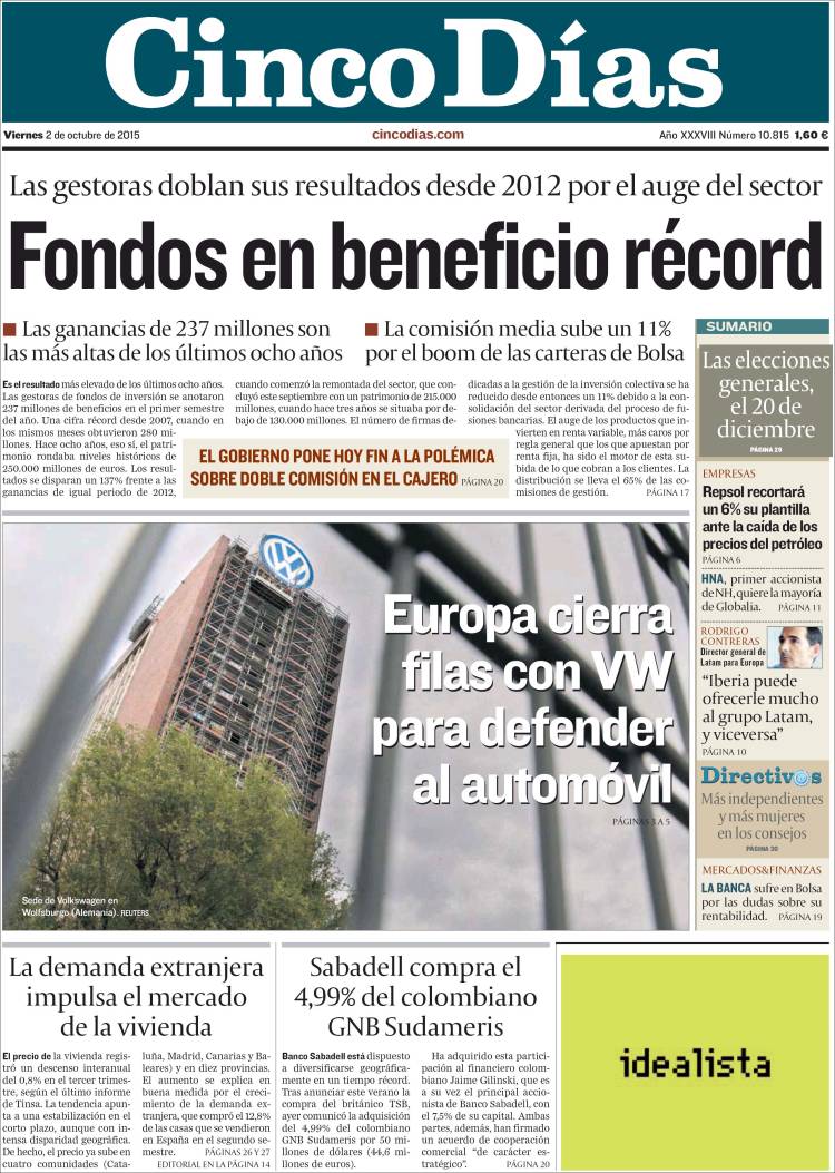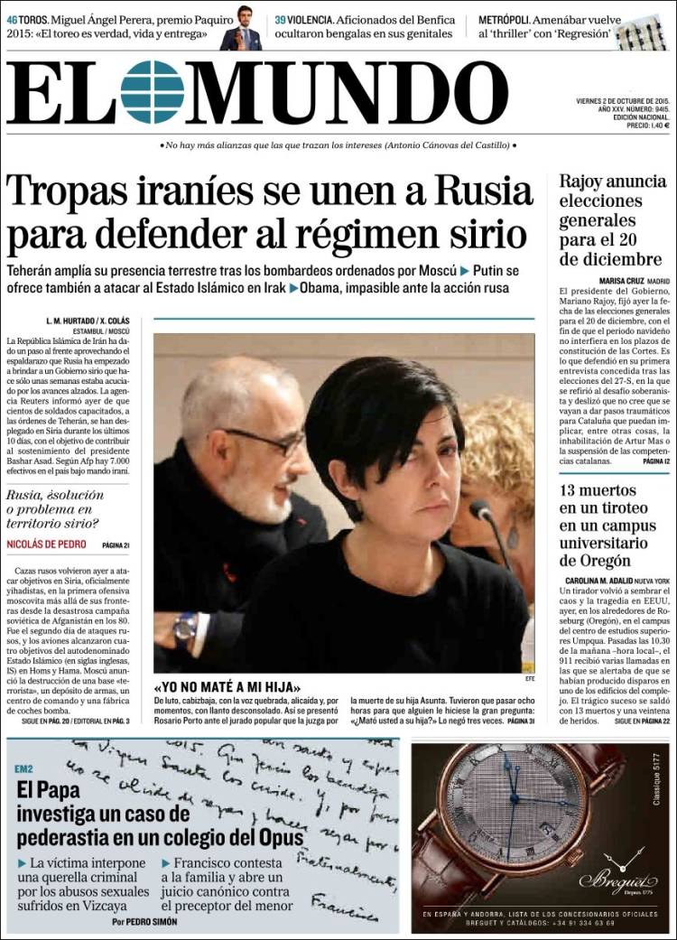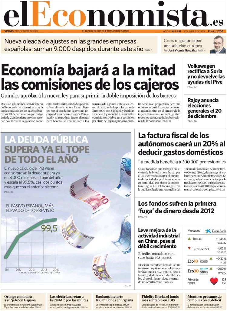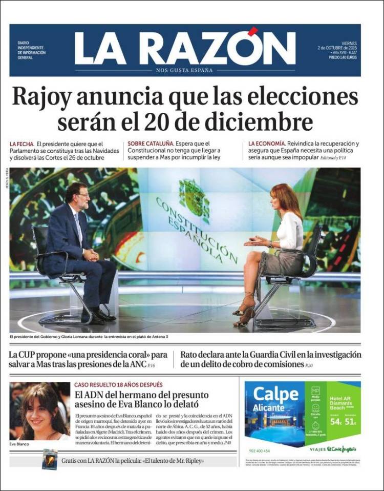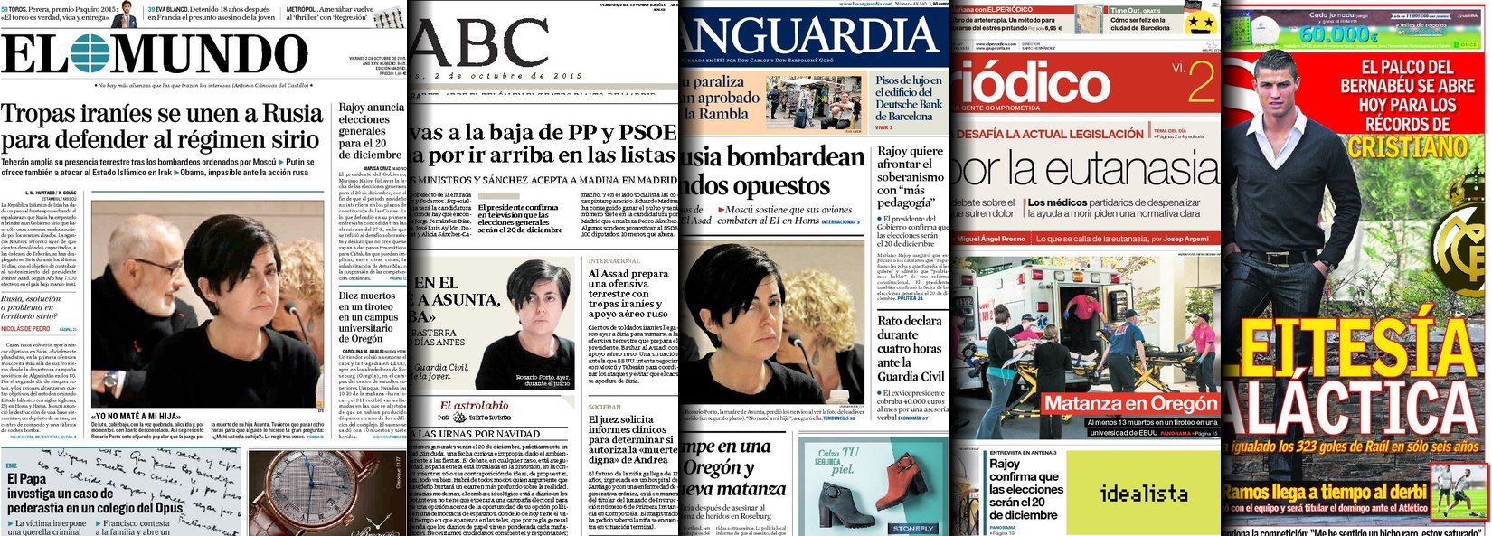 Portadas de los diarios El Mundo, El País, ABC, La Razón, La Vanguardia, El Periódico, Cinco Días, El Economista, Expansión, Marca, As, Mundo Deportivo y Sport.