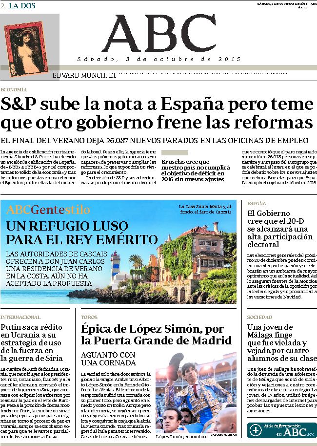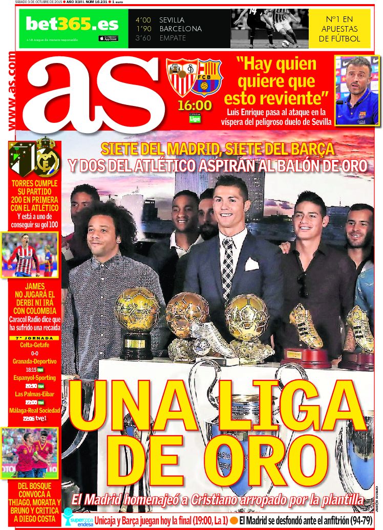 Portadas de los diarios ABC, As, El Periódico y La Vanguardia.
