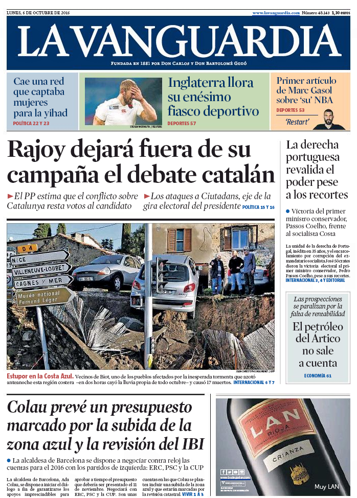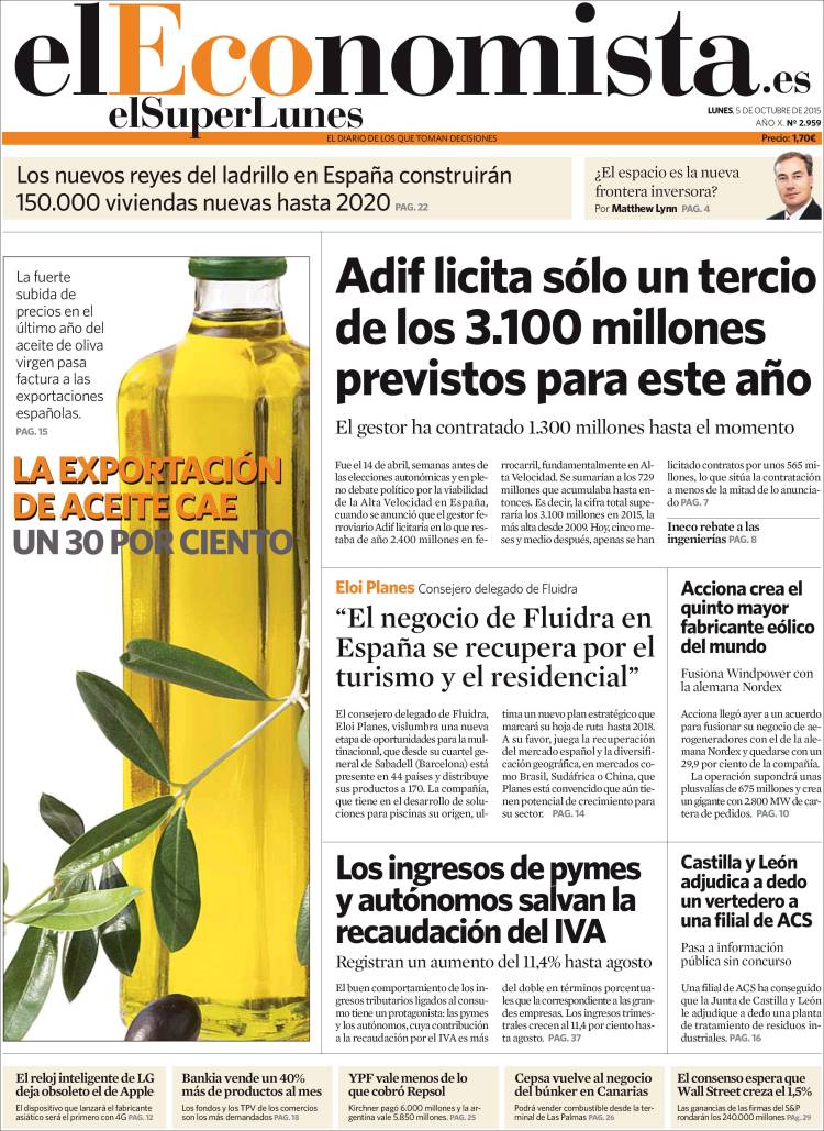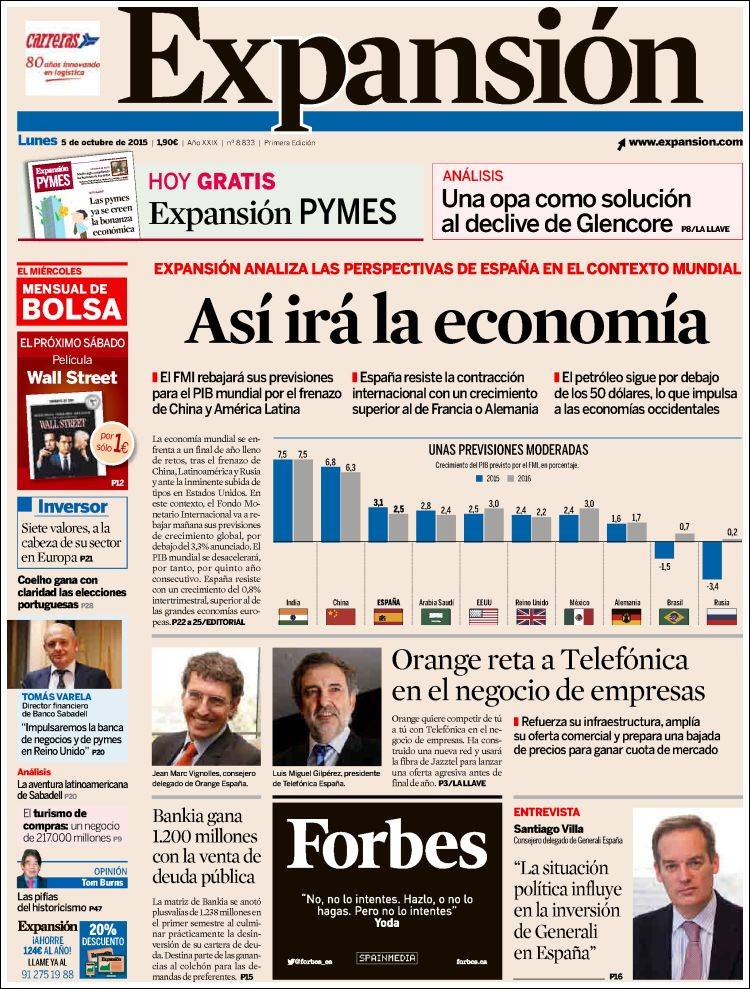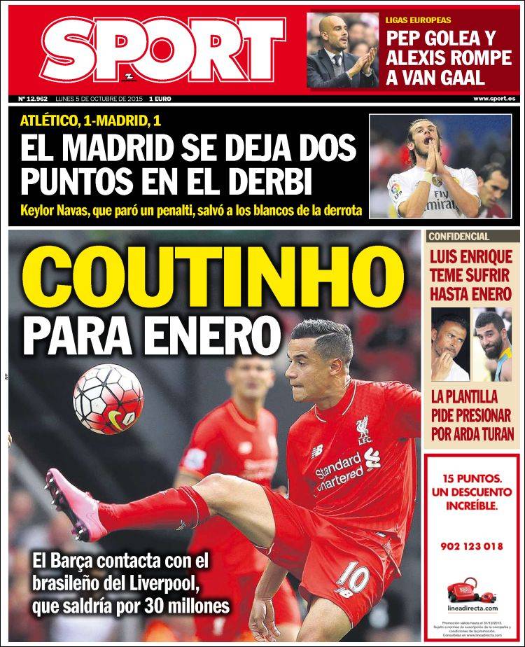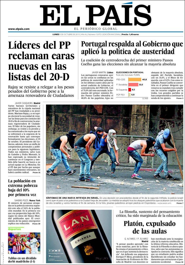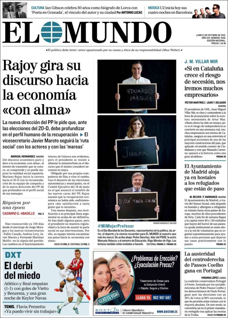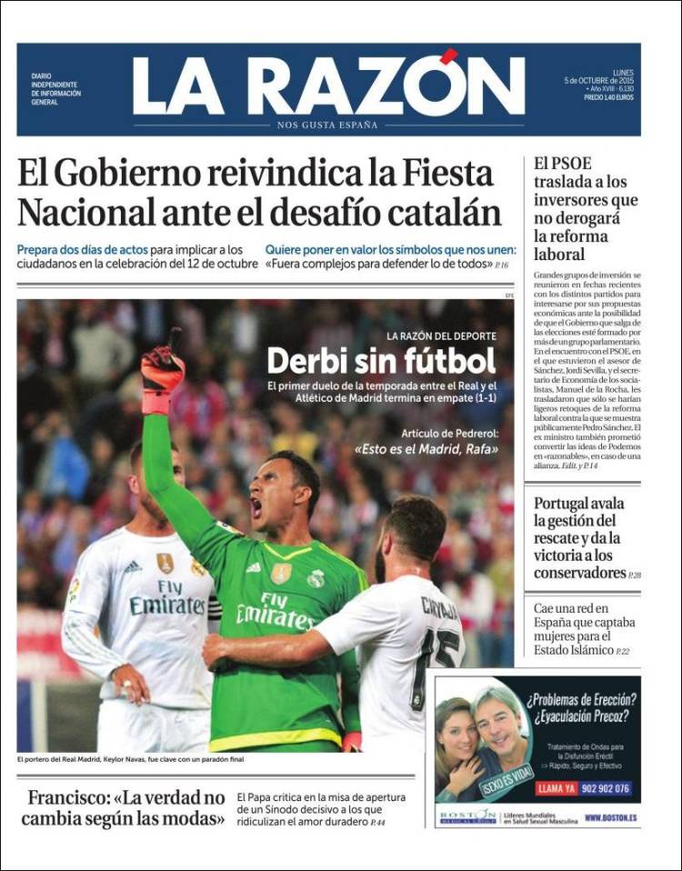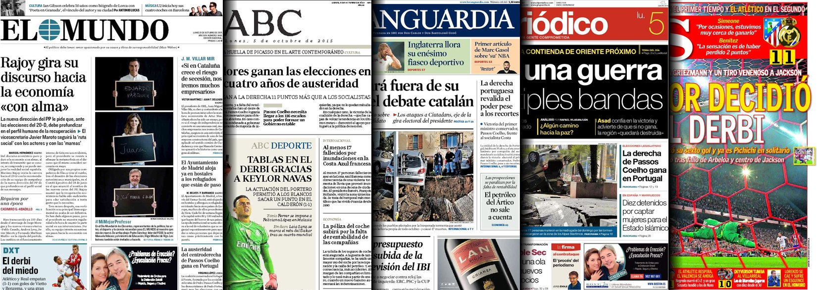 Portadas de los diarios El Mundo, El País, ABC, La Razón, La Vanguardia, El Periódico, Cinco Días, El Economista, Expansión, Marca, As, Mundo Deportivo y Sport.
