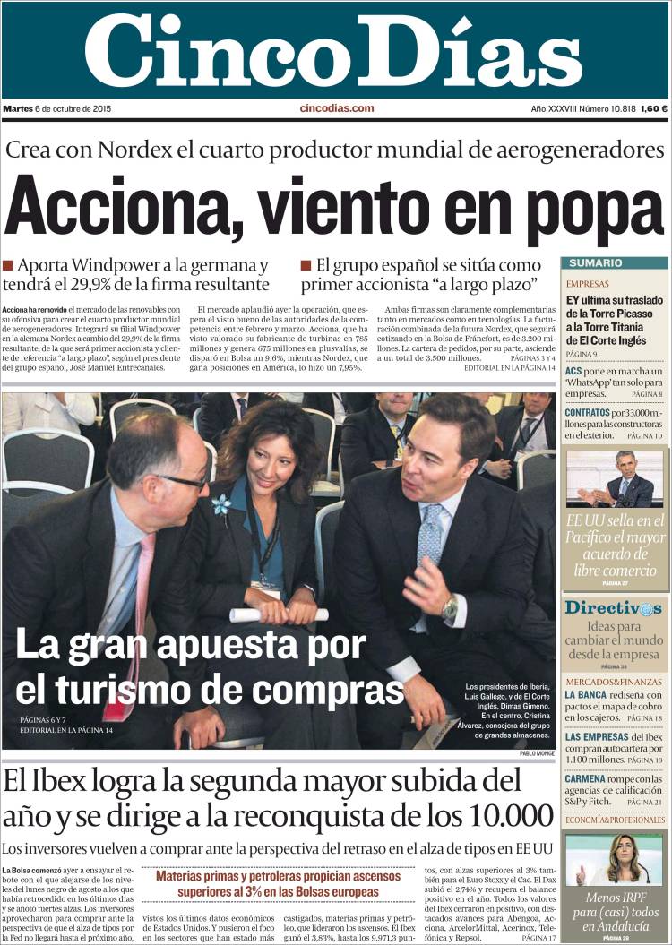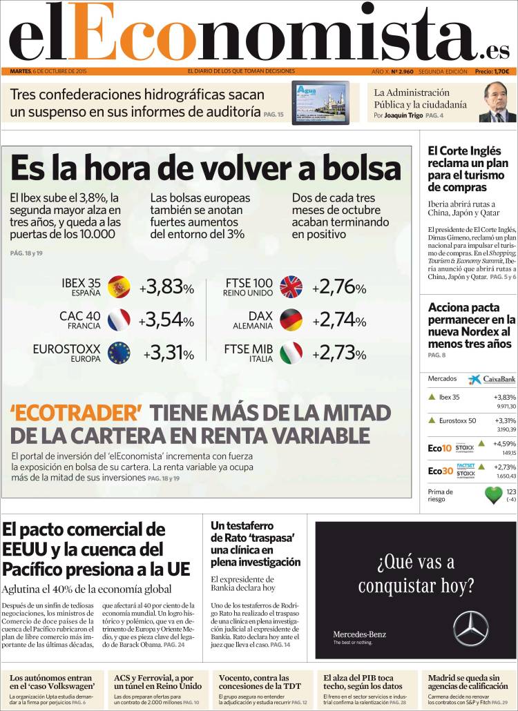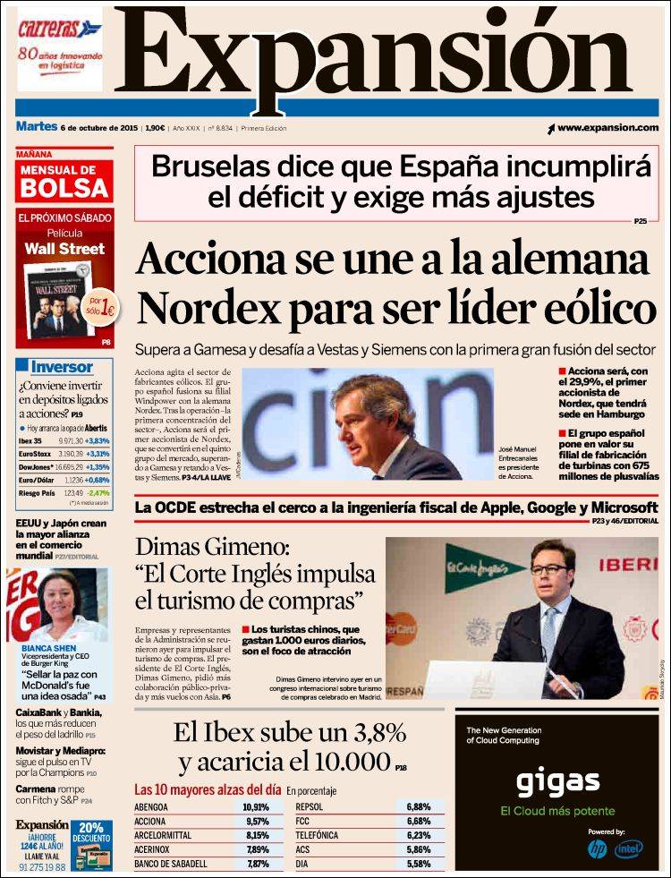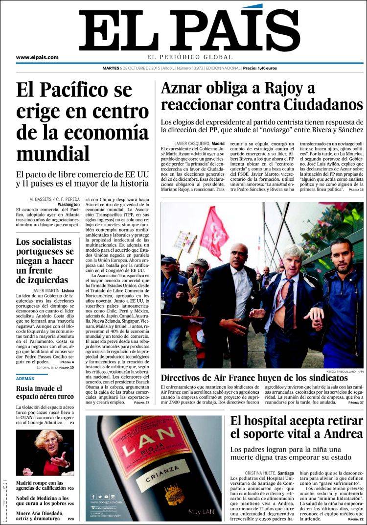 Portadas de los diarios El Mundo, El País, ABC, La Razón, La Vanguardia, El Periódico, Cinco Días, El Economista, Expansión, Marca, As, Mundo Deportivo y Sport.