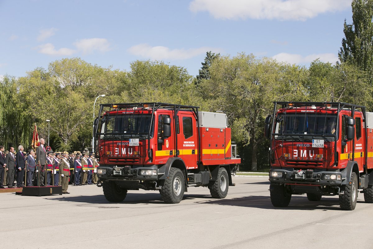 Algunos medios de la UME han desfilado en el X aniversario de la unidad.