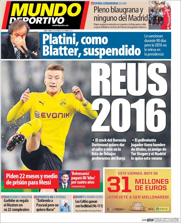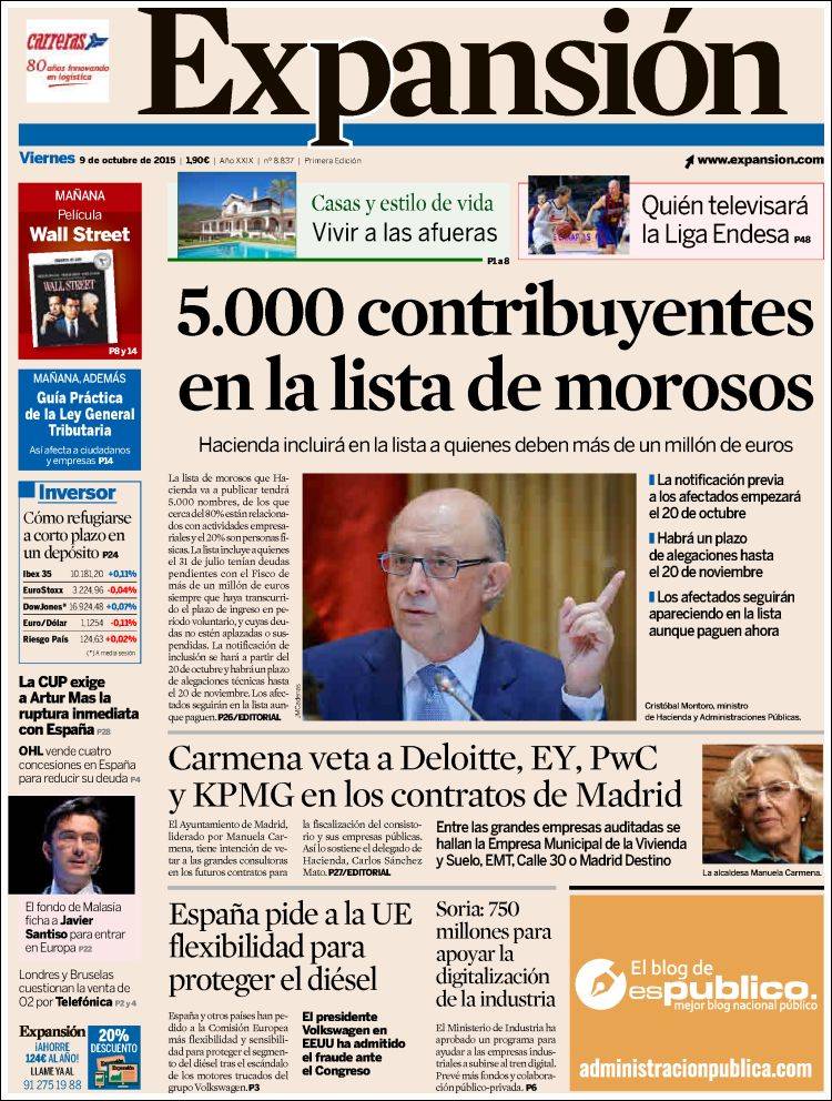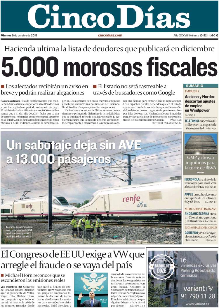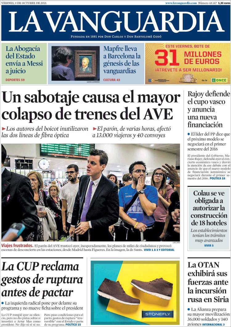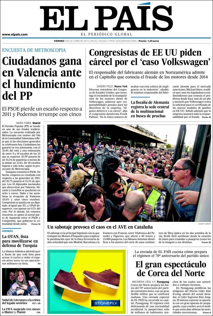 Portadas de los diarios El Mundo, El País, ABC, La Razón, La Vanguardia, El Periódico, Cinco Días, El Economista, Expansión, Marca, As, Mundo Deportivo y Sport.