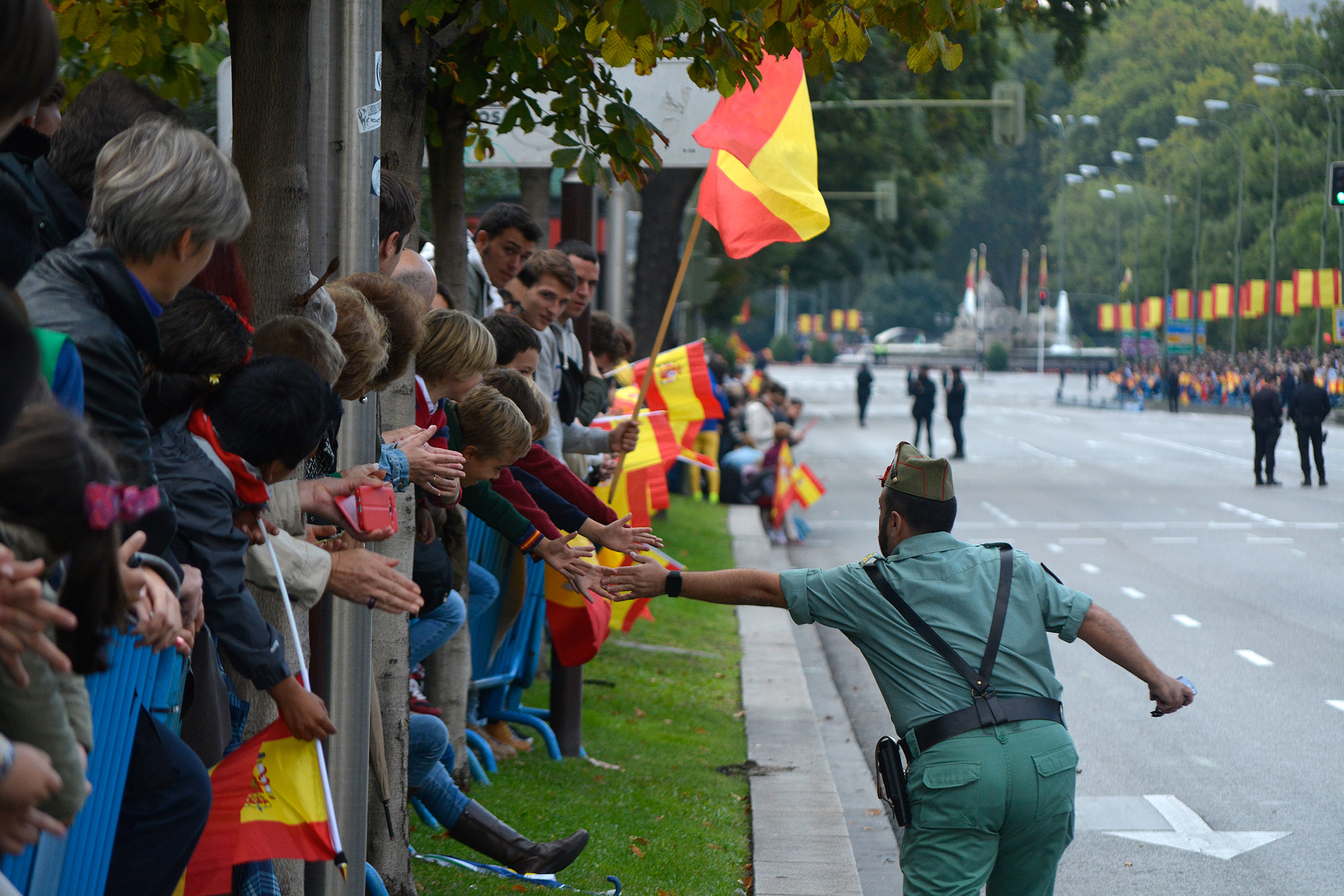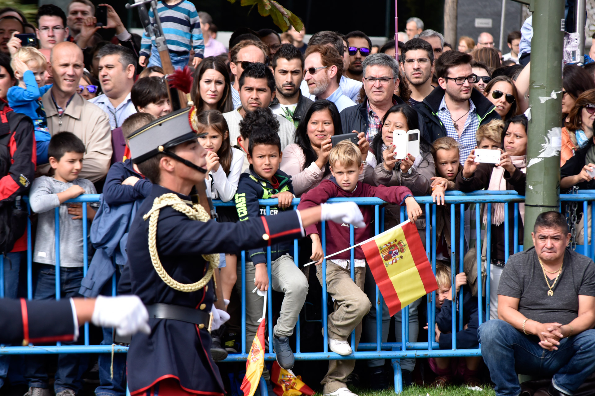 Mucha gente se ha reunido llenando todo el recorrido del desfile por el Paseo de la Castellana. Destacar la presencia de muchos niños y familias.