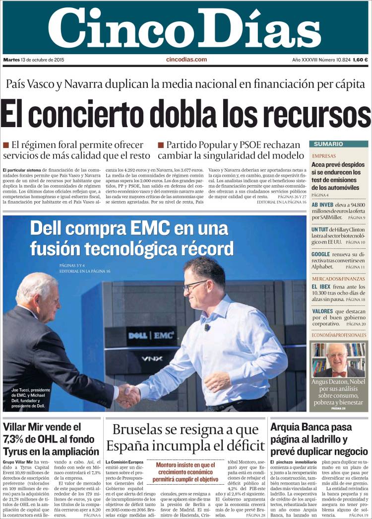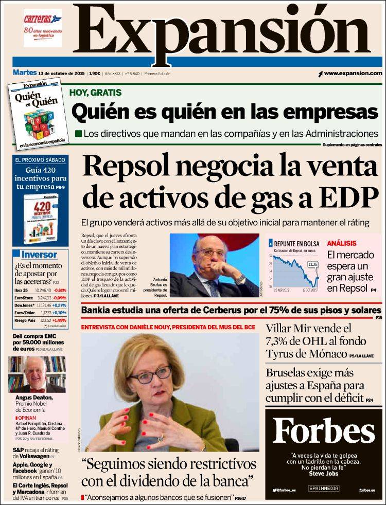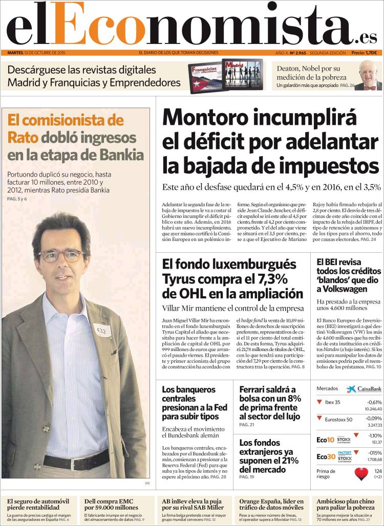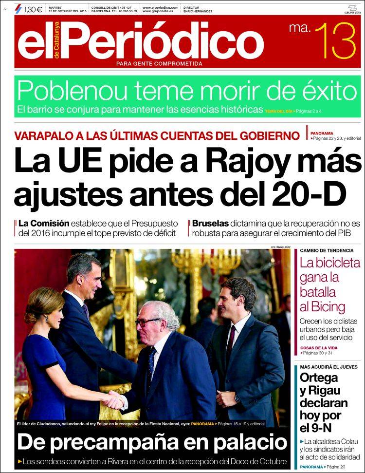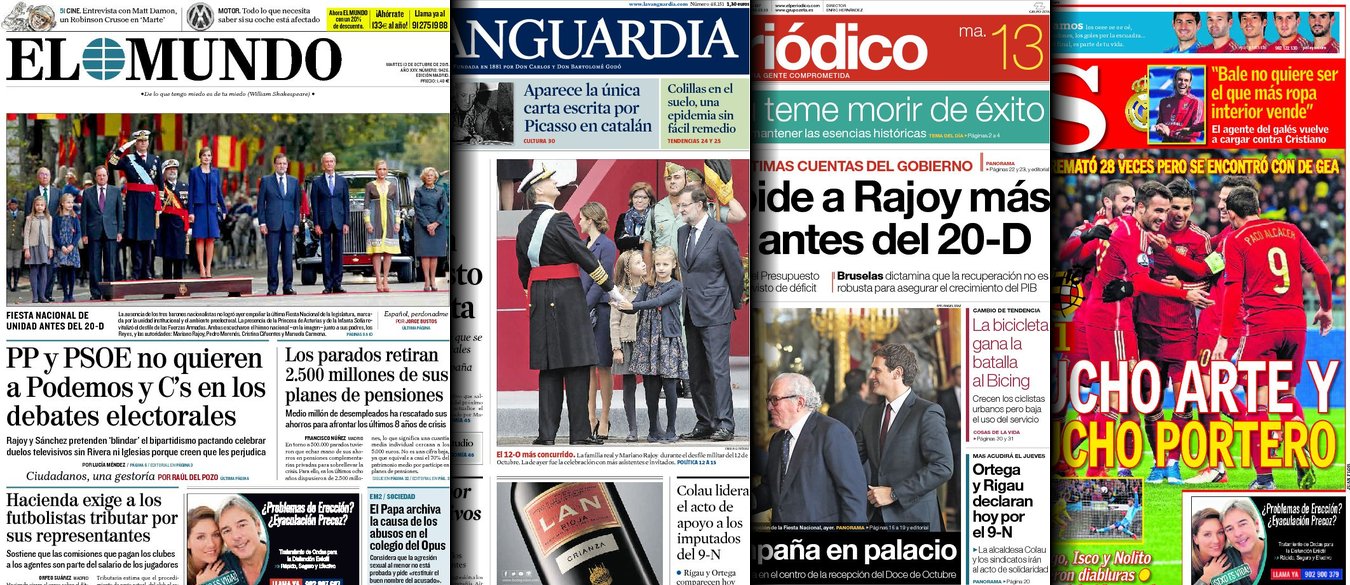 Portadas de los diarios El Mundo, El País, ABC, La Razón, La Vanguardia, El Periódico, Cinco Días, El Economista, Expansión, Marca, As, Mundo Deportivo y Sport.