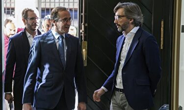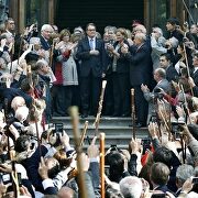 Baños esperaba al president a las puertas del TJSC para mostrarle sus respetos; el líder de CDC le dio unas palmadas en el hombro.