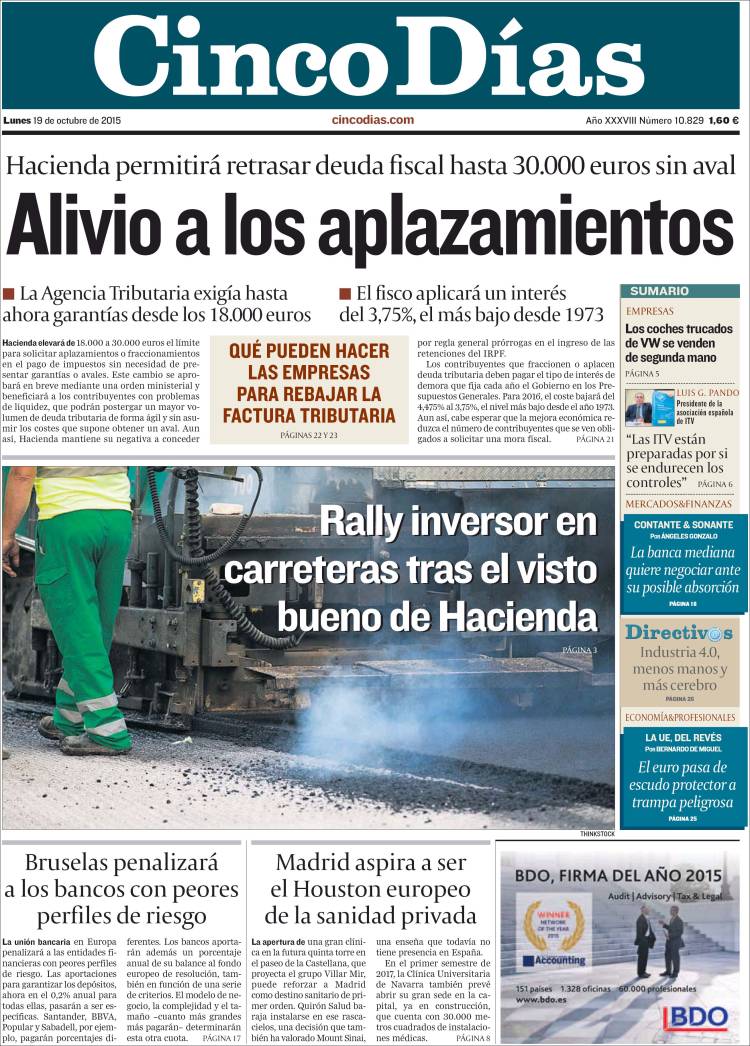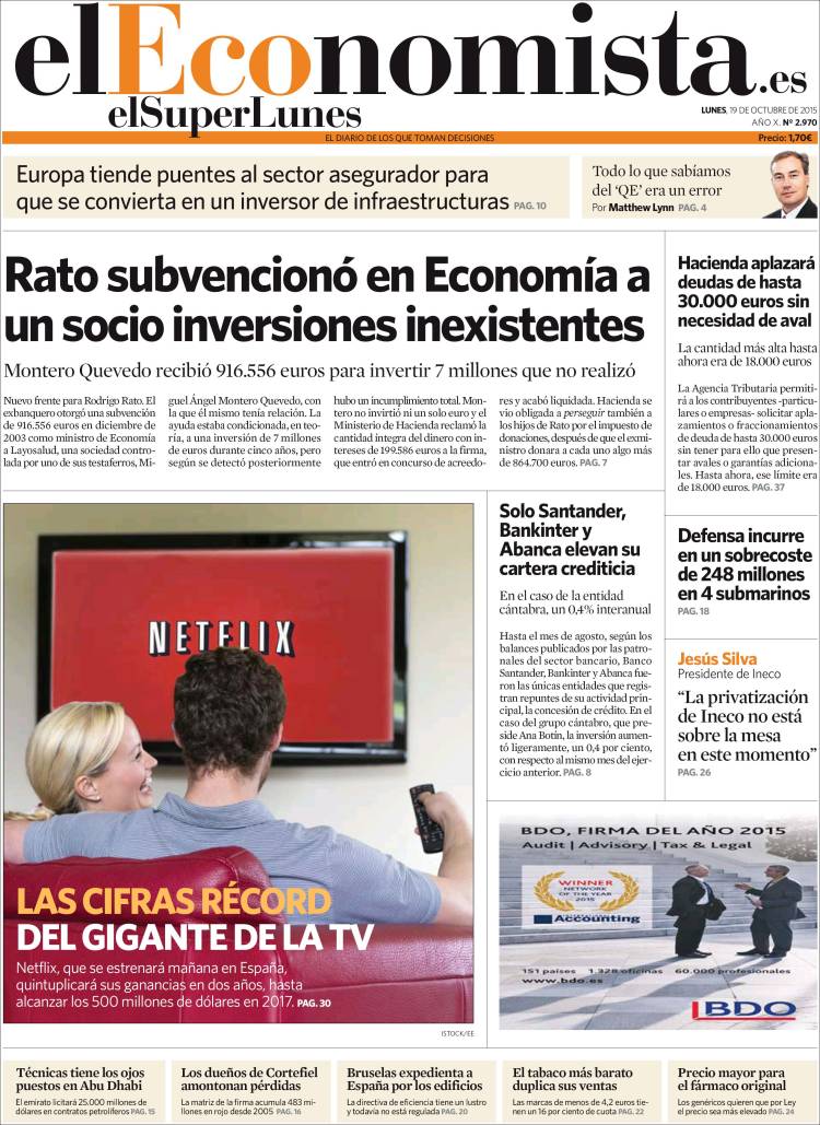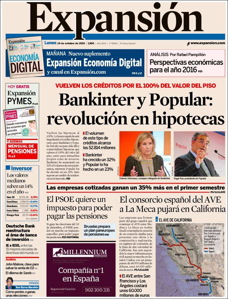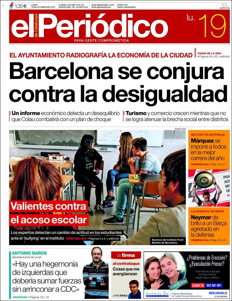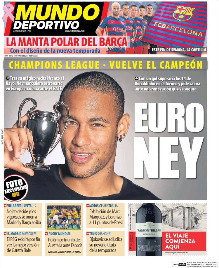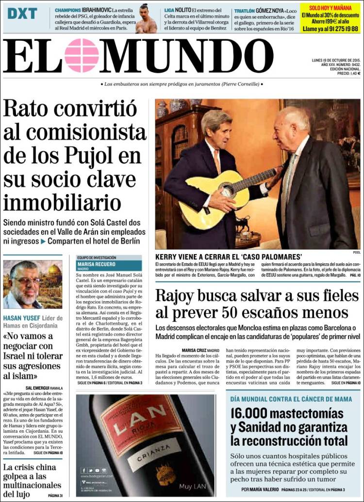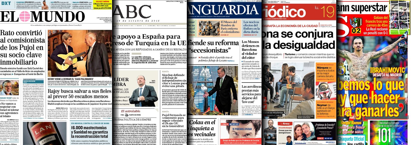 Portadas de los diarios El Mundo, El País, ABC, La Razón, La Vanguardia, El Periódico, Cinco Días, El Economista, Expansión, Marca, As, Mundo Deportivo y Sport.
