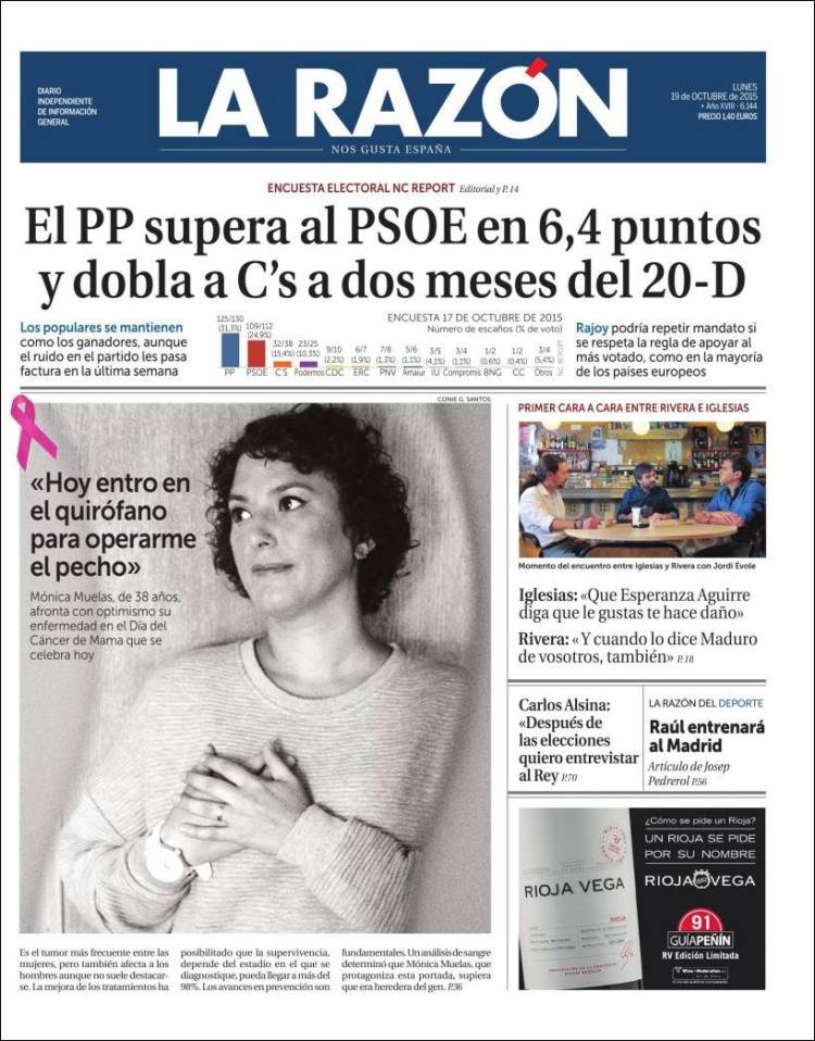 "El PP supera al PSOE en 6,4 puntos y dobla a C´s a dos meses del 20-D"