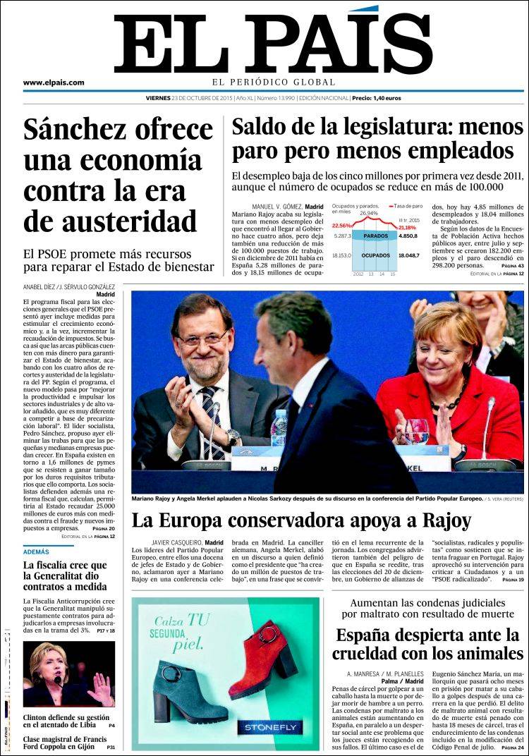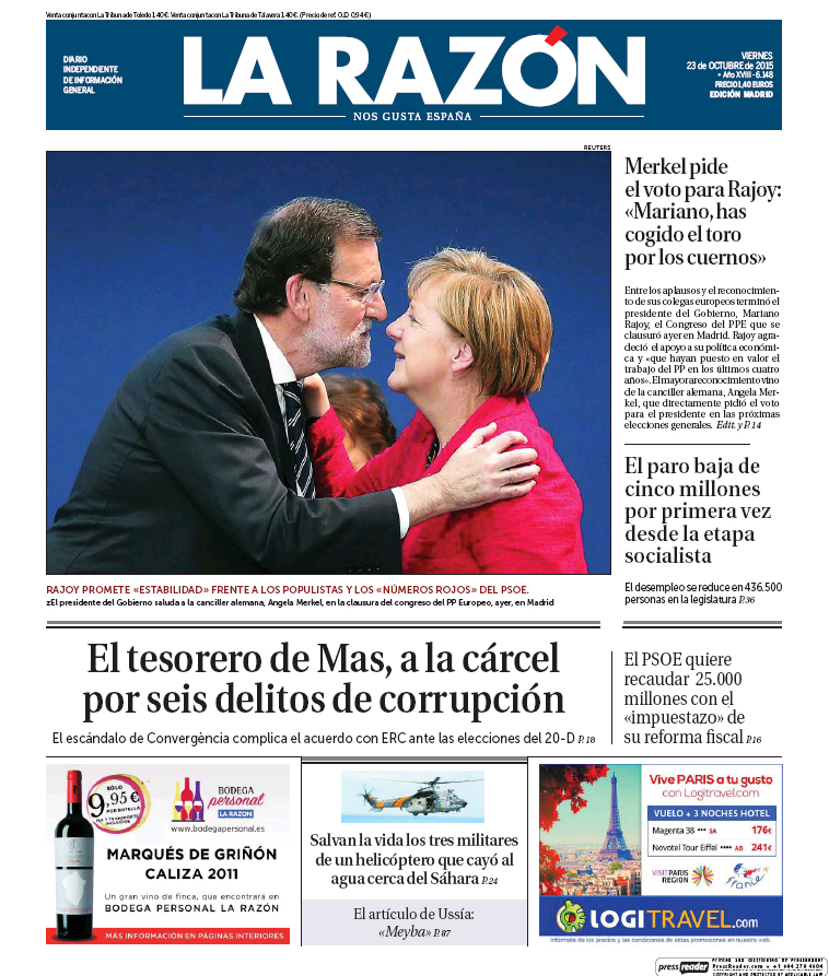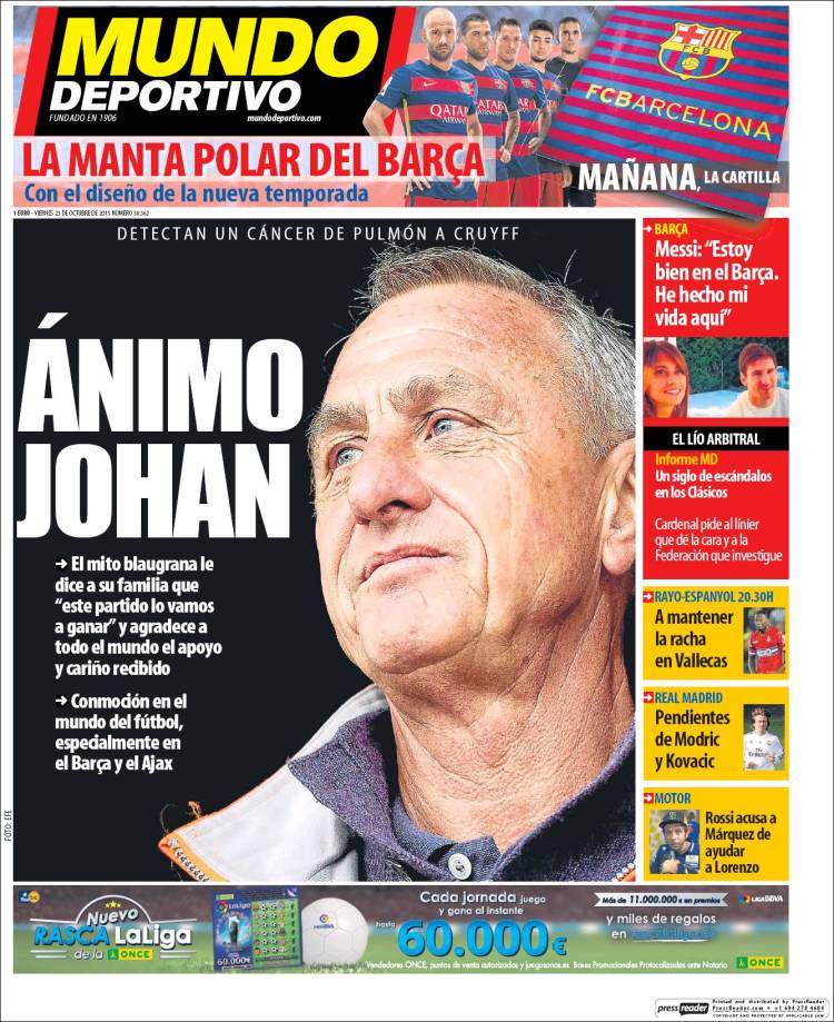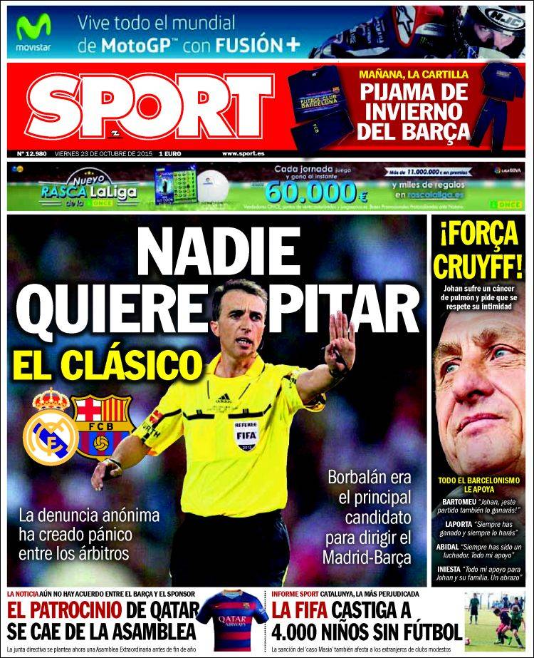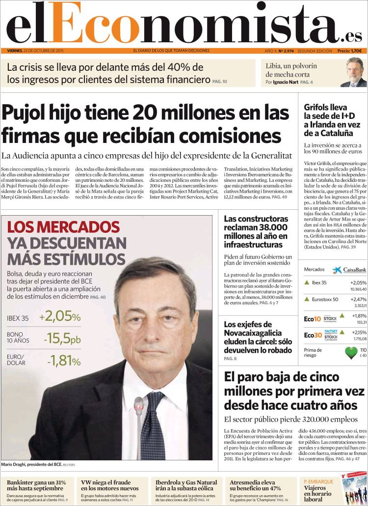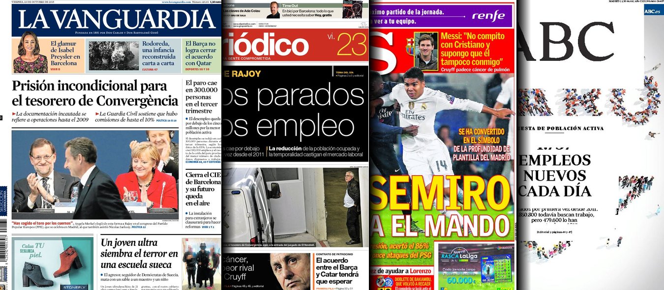 Portadas de los diarios El Mundo, El País, ABC, La Razón, La Vanguardia, El Periódico, Cinco Días, El Economista, Expansión, Marca, As, Mundo Deportivo y Sport.