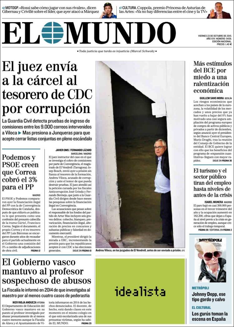 "El juez envía a la cárcel al tesorero del CDC por corrupción"