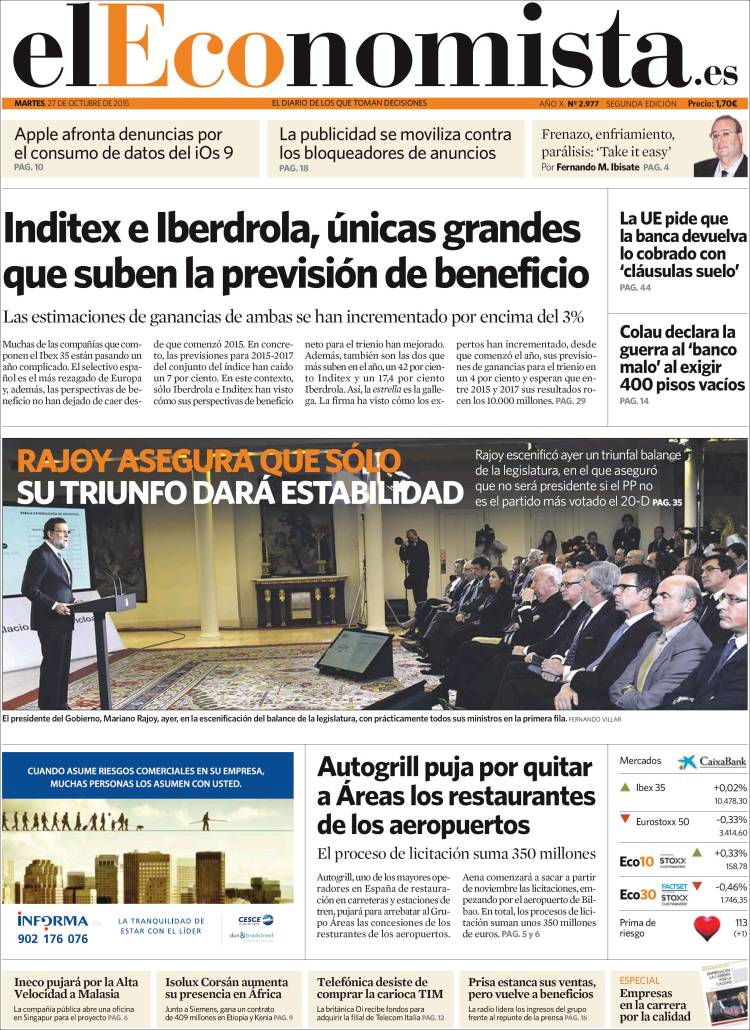 "Inditex e Iberdrola, únicas grandes que suben la previsión de beneficios"