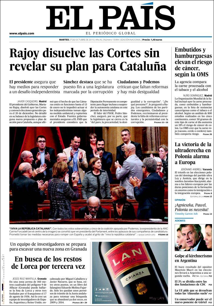 "Rajoy disuelve las Cortes sin revelar su plan para Cataluña"