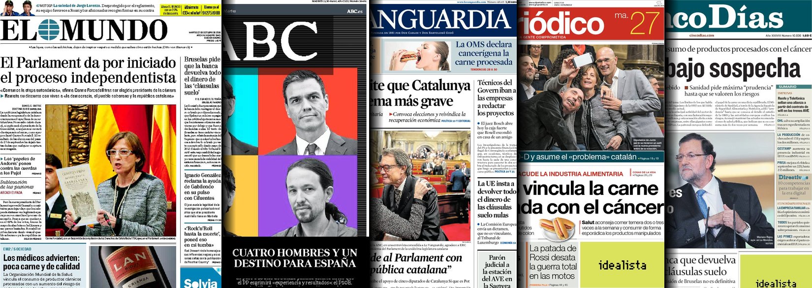 Portadas de los diarios El Mundo, El País, ABC, La Razón, La Vanguardia, El Periódico, Cinco Días, El Economista, Expansión, Marca, As y Mundo Deportivo