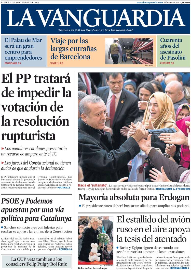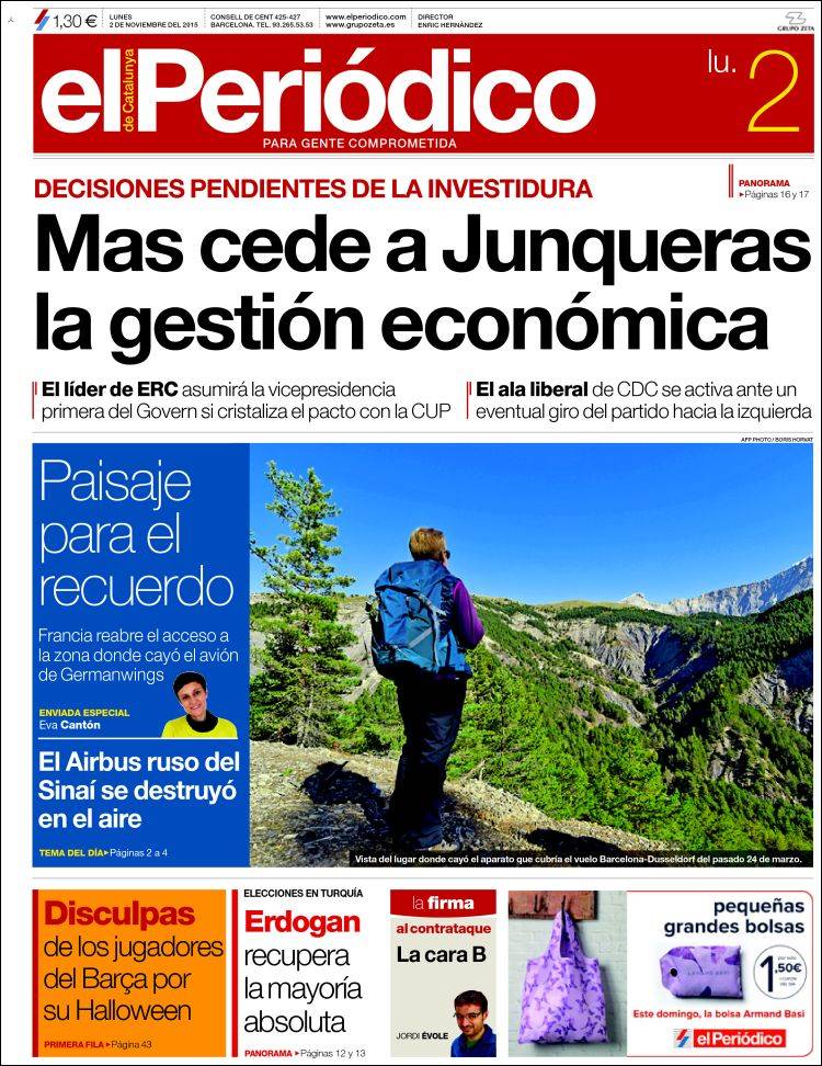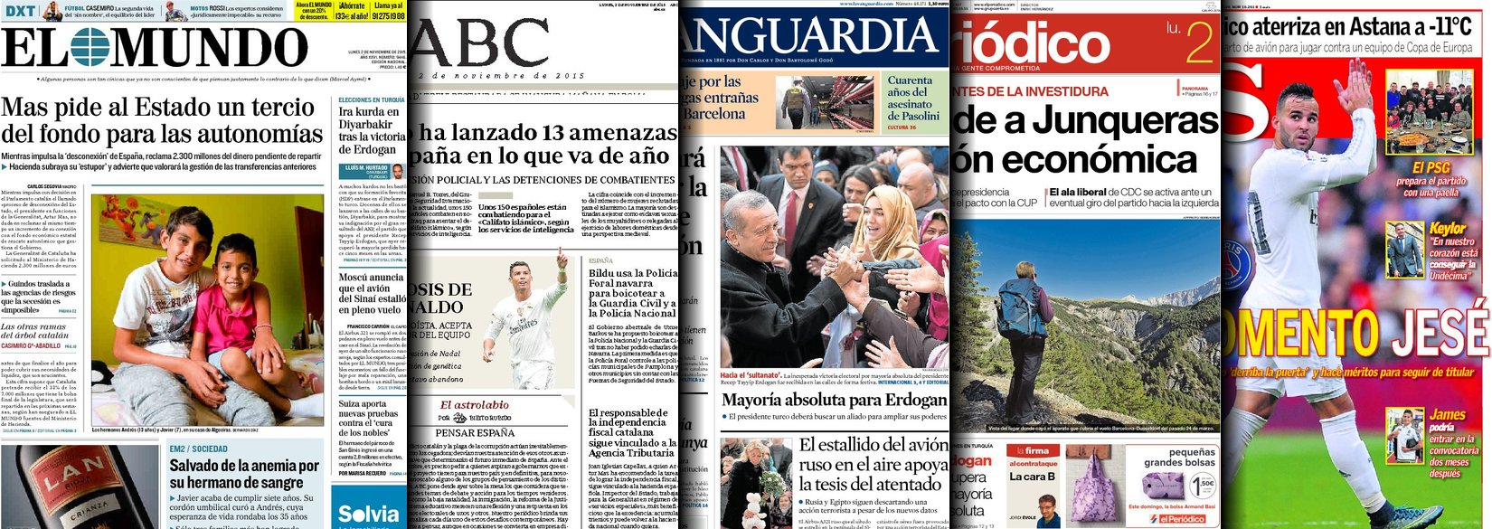 Portadas de los diarios El Mundo, El País, ABC, La Razón, La Vanguardia, El Periódico, Cinco Días, El Economista, Expansión, Marca, As, Mundo Deportivo y Sport.