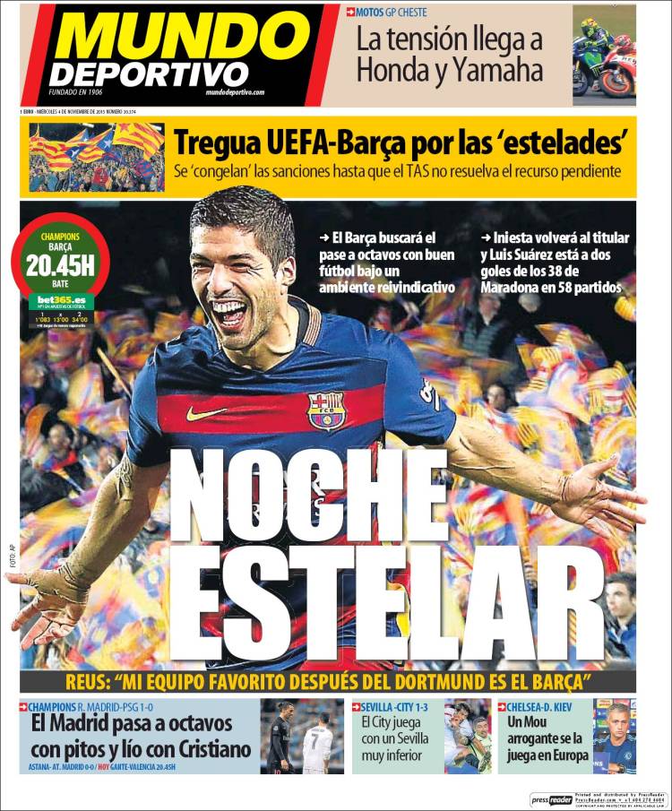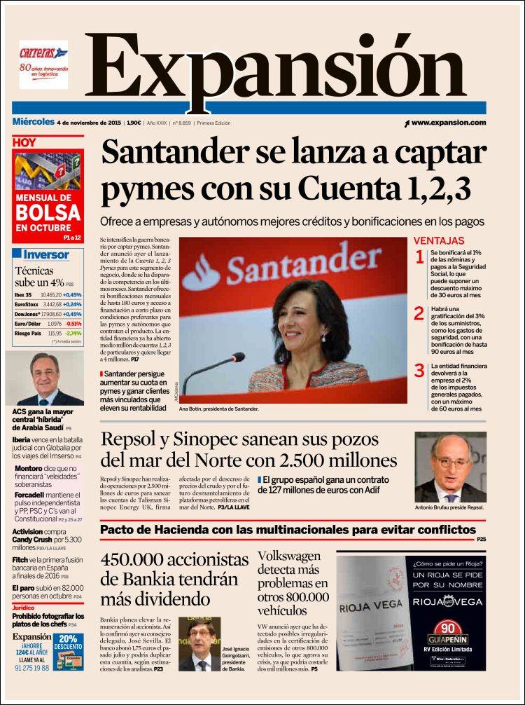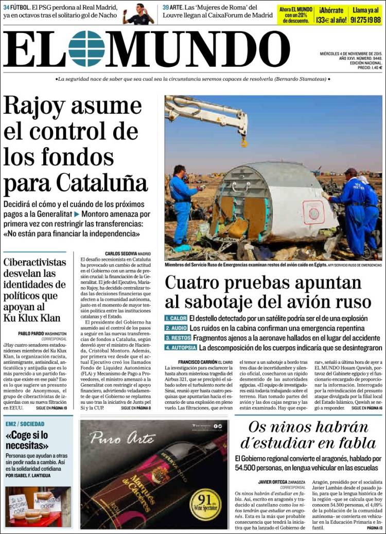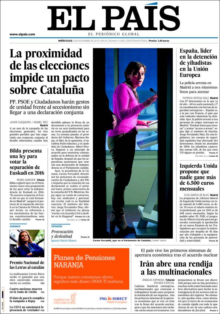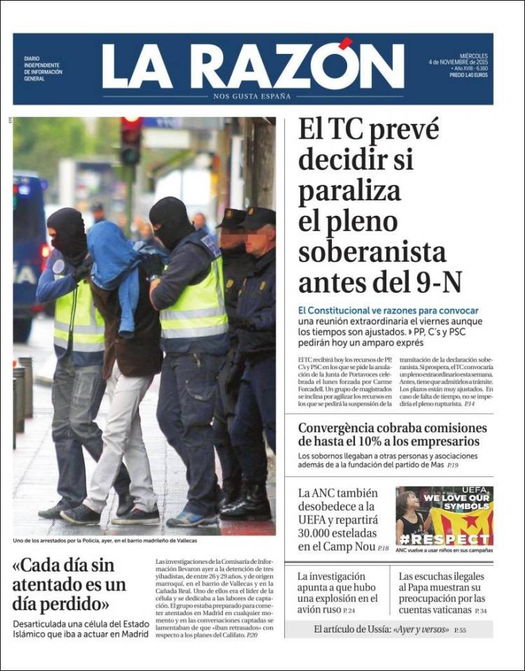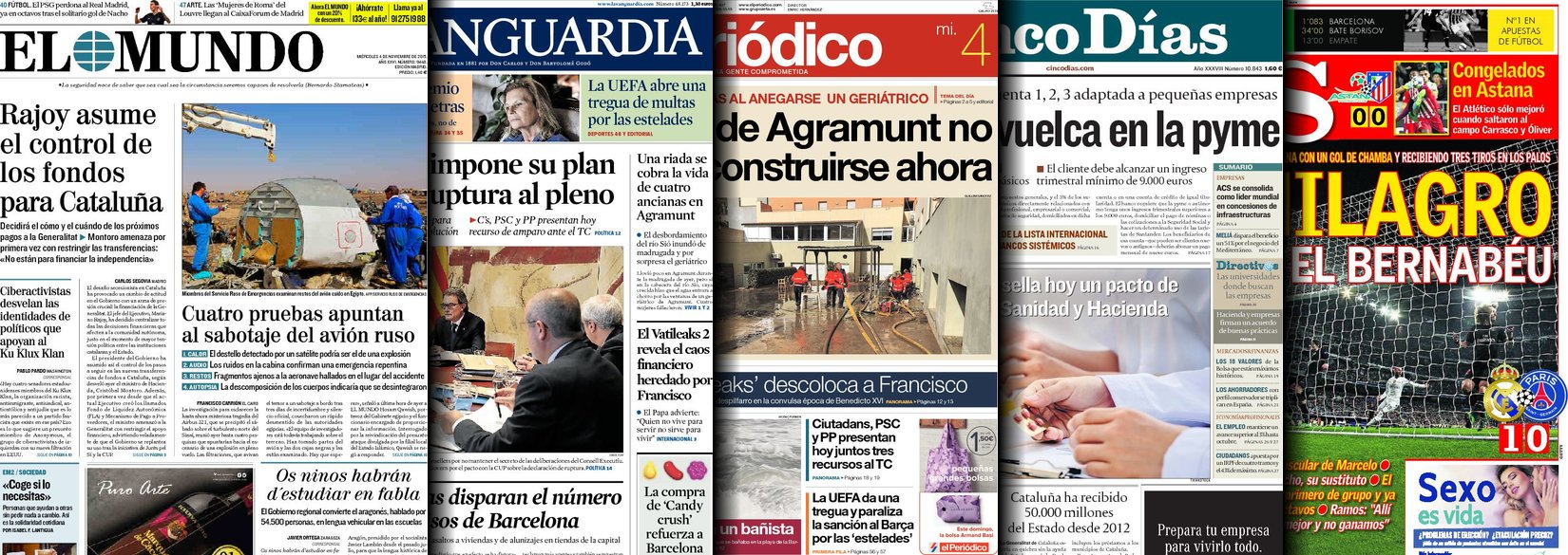 Portadas de los diarios El Mundo, El País, ABC, La Razón, La Vanguardia, El Periódico, Cinco Días, El Economista, Expansión, Marca, As, Mundo Deportivo y Sport.