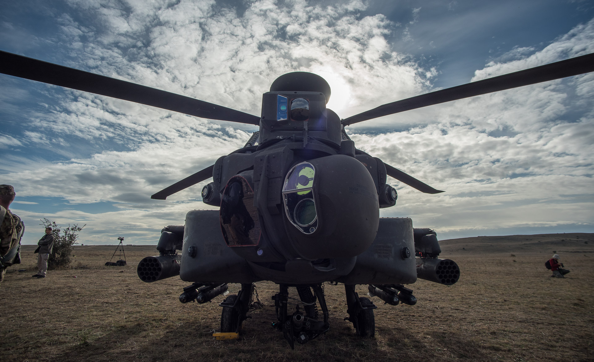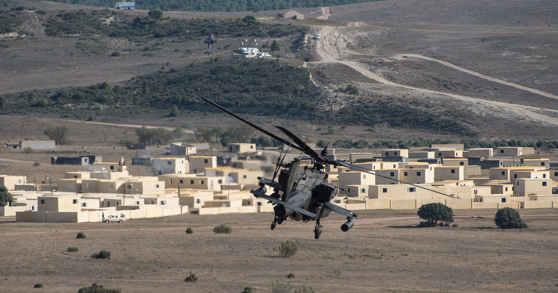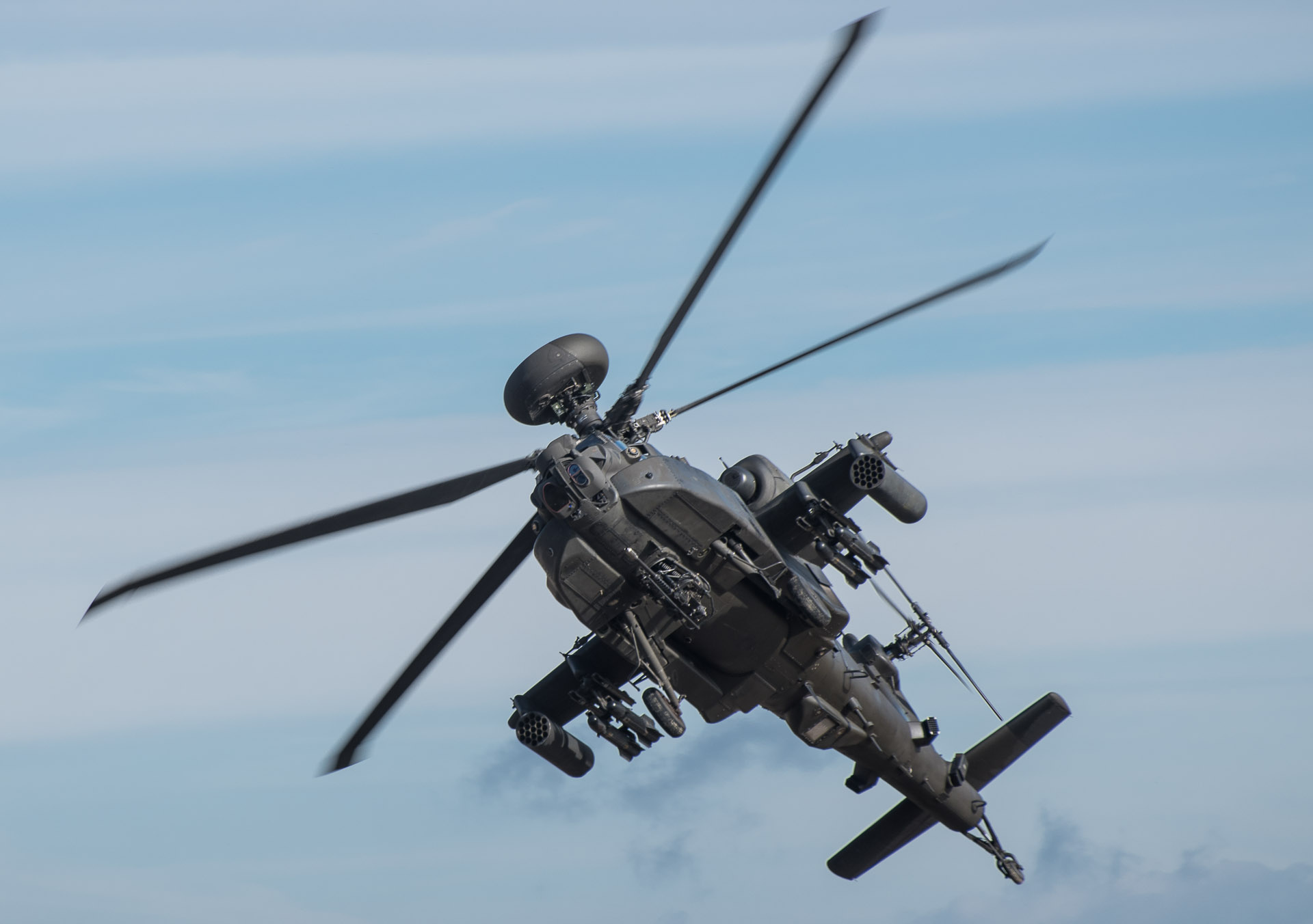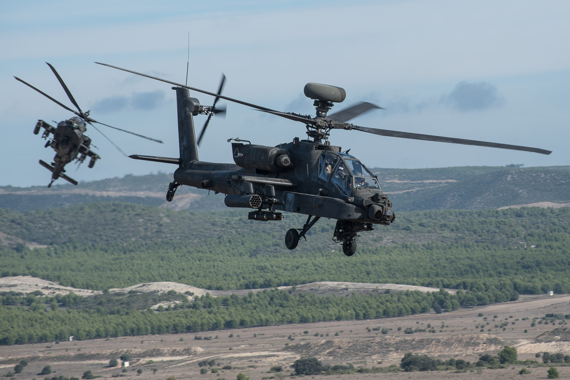 Uno de los impresionantes helicópteros Apache que ha participado en los ejercicios