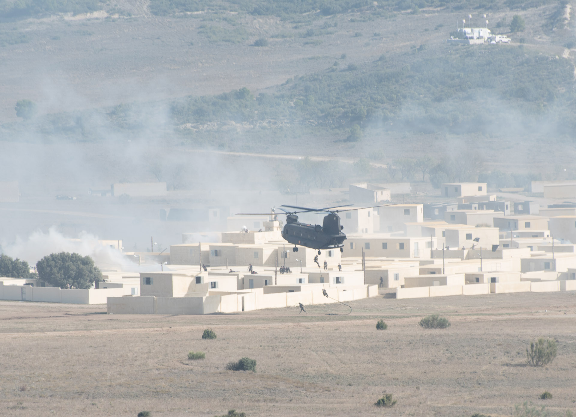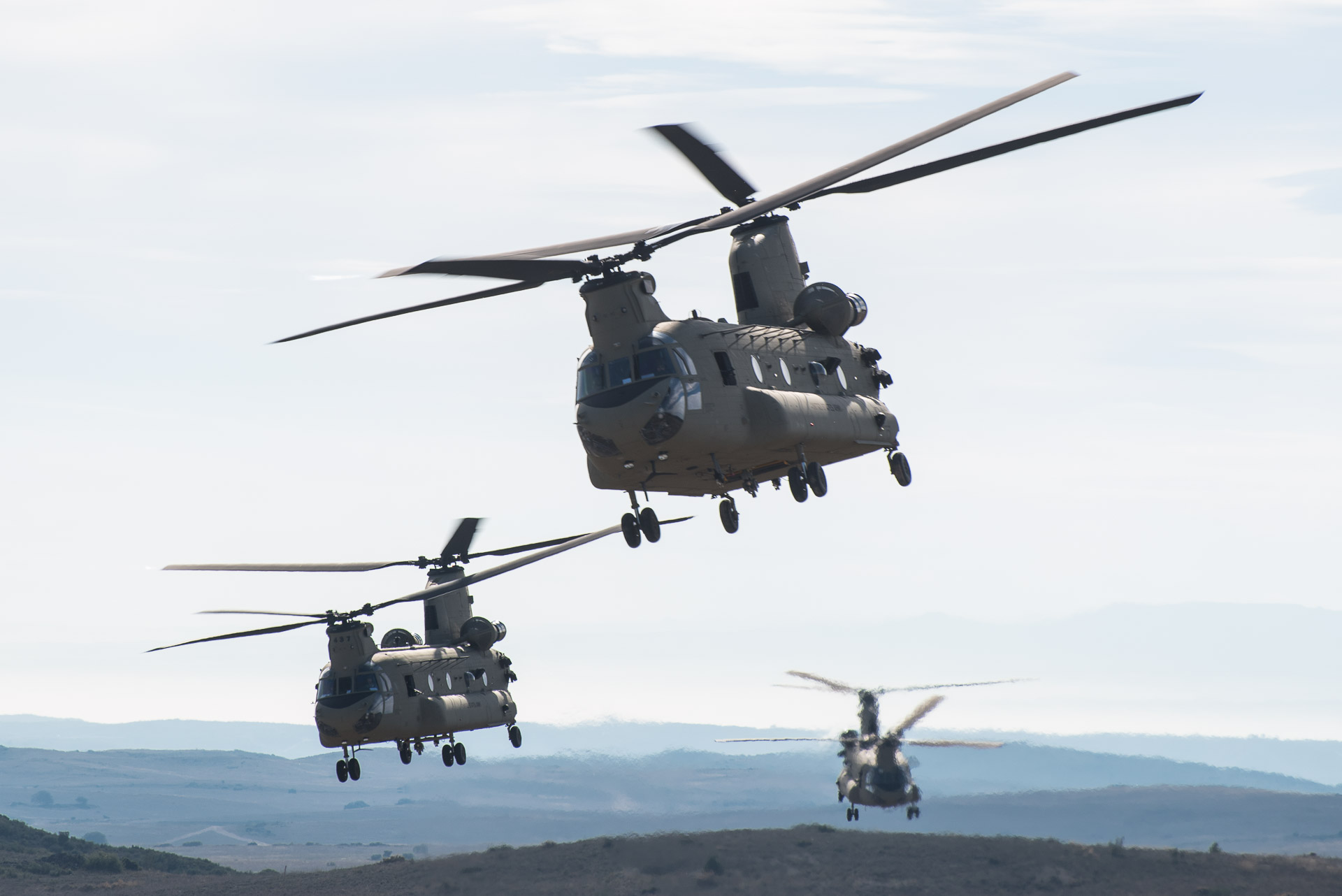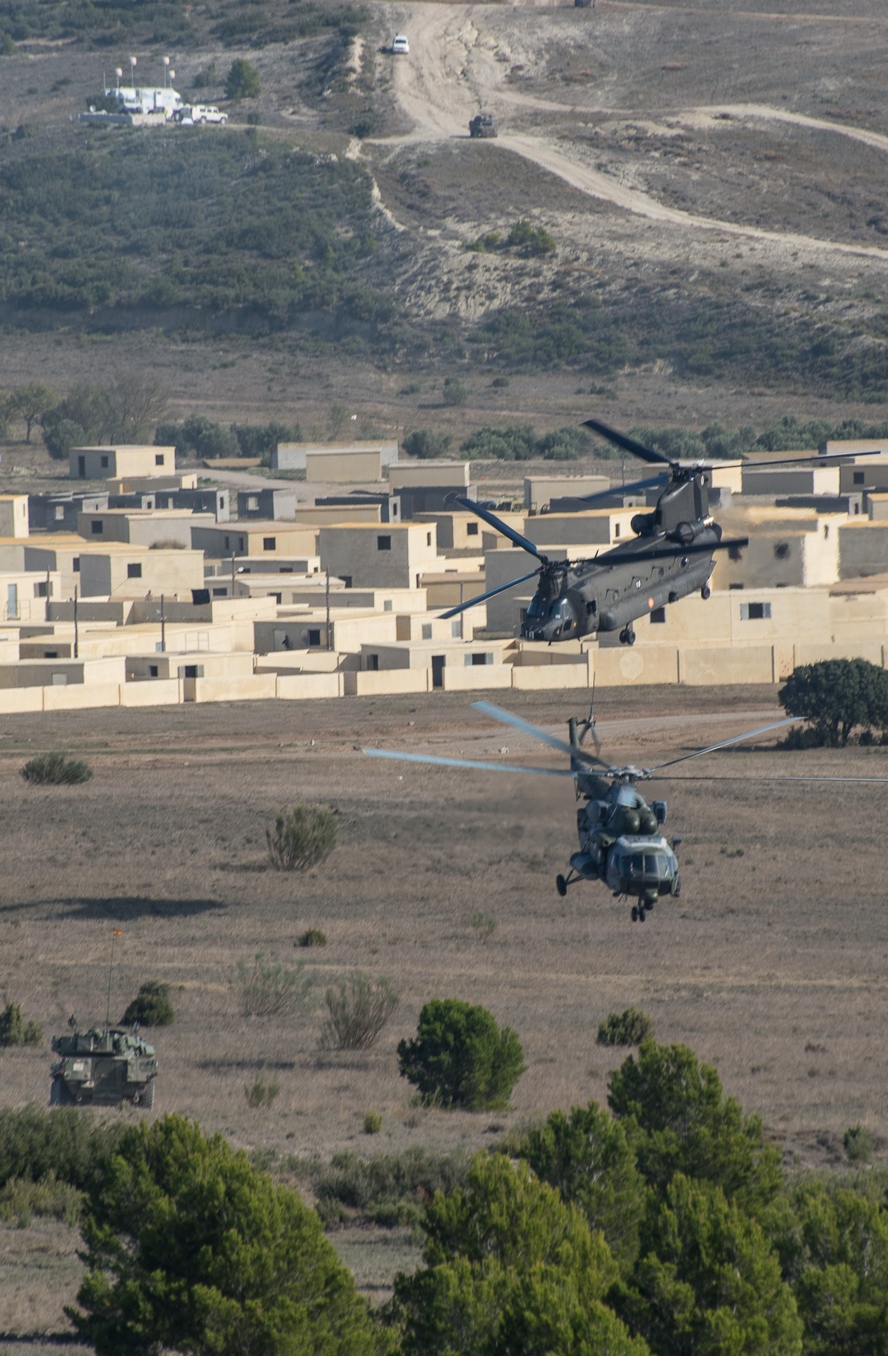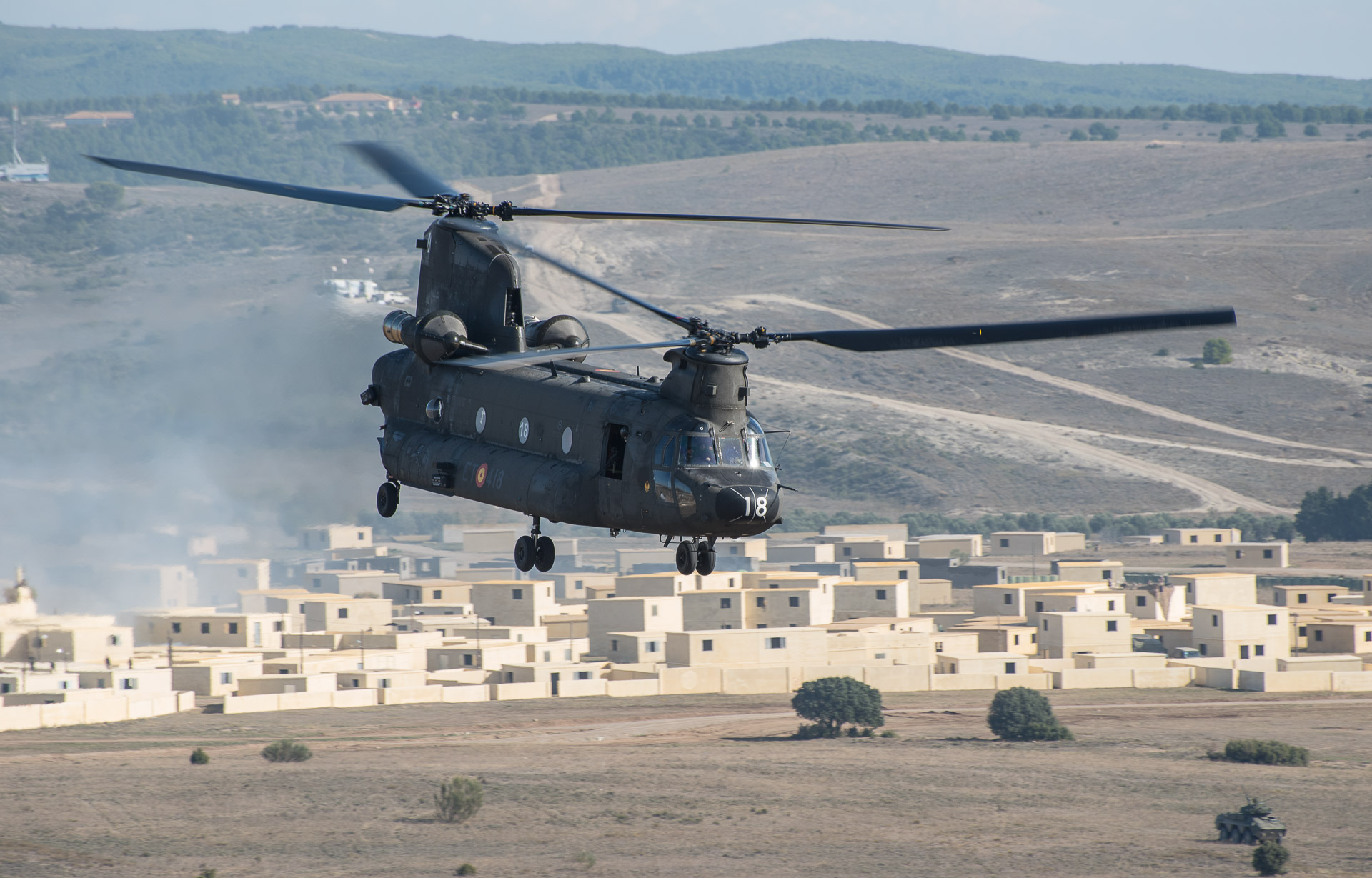 Los terceros helicópteros en participar en las maniobras han sido los gigantescos Chinook