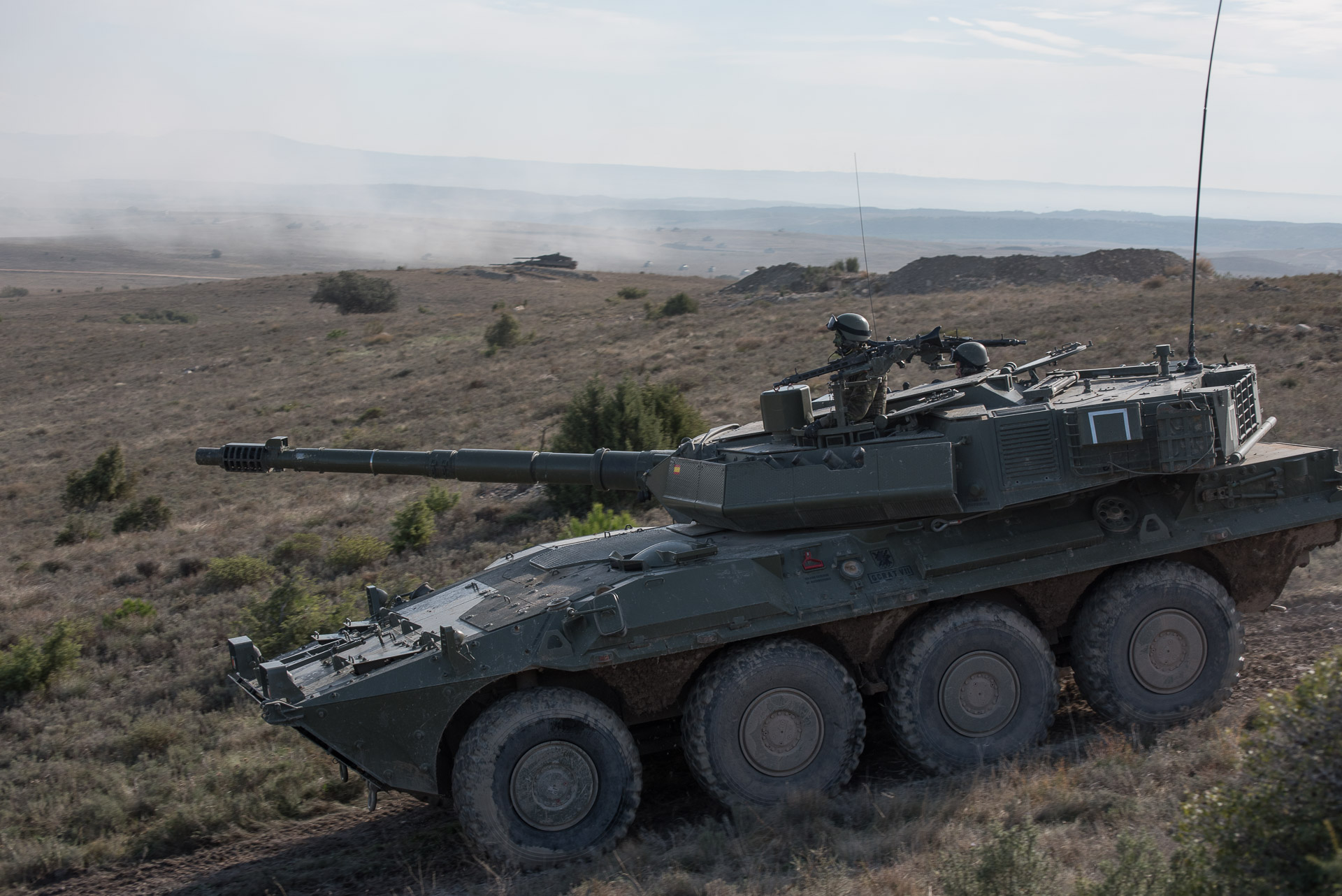 Vehículos blindados se adentran en el terreno en el que se desarrollan las maniobras