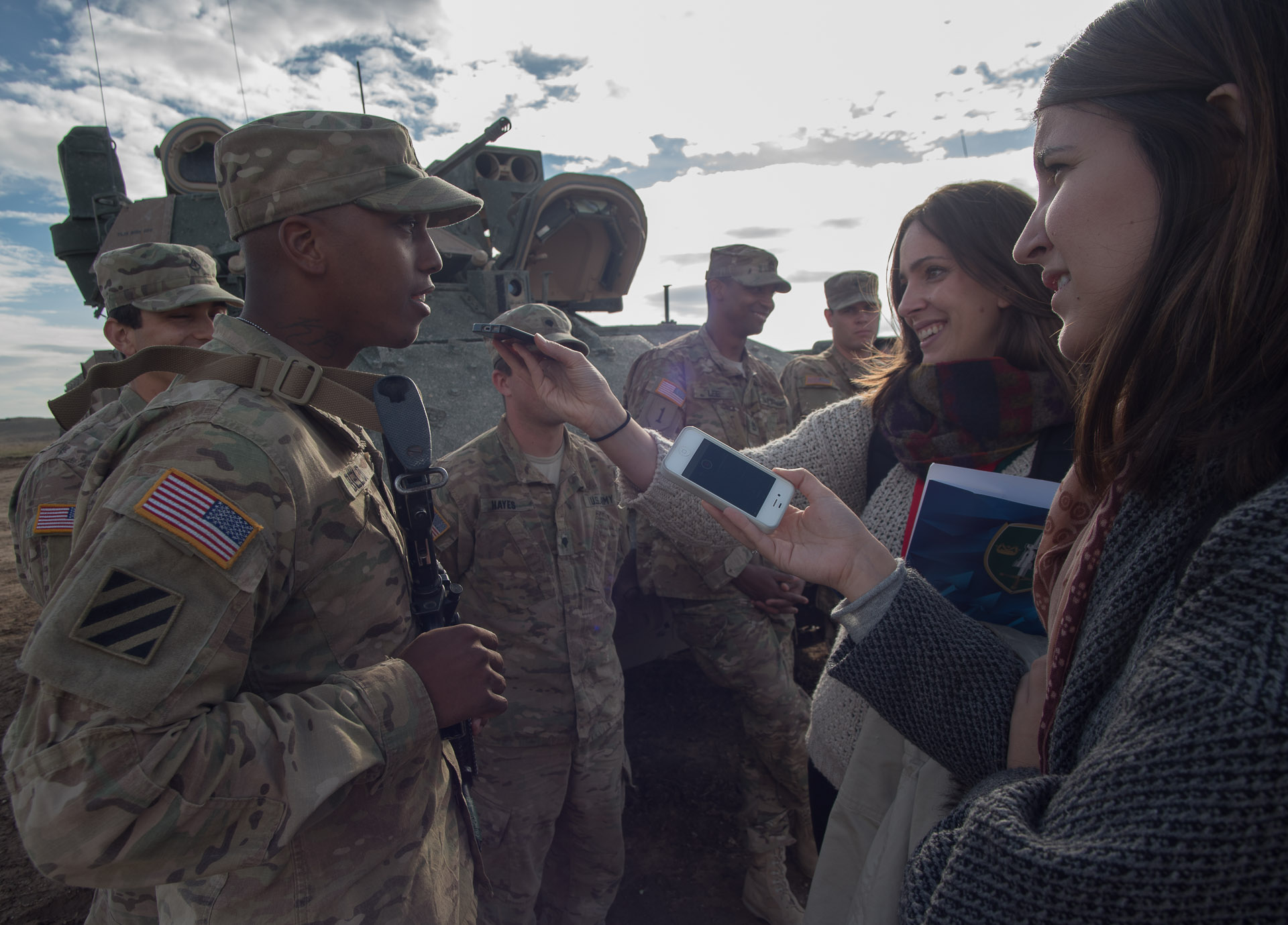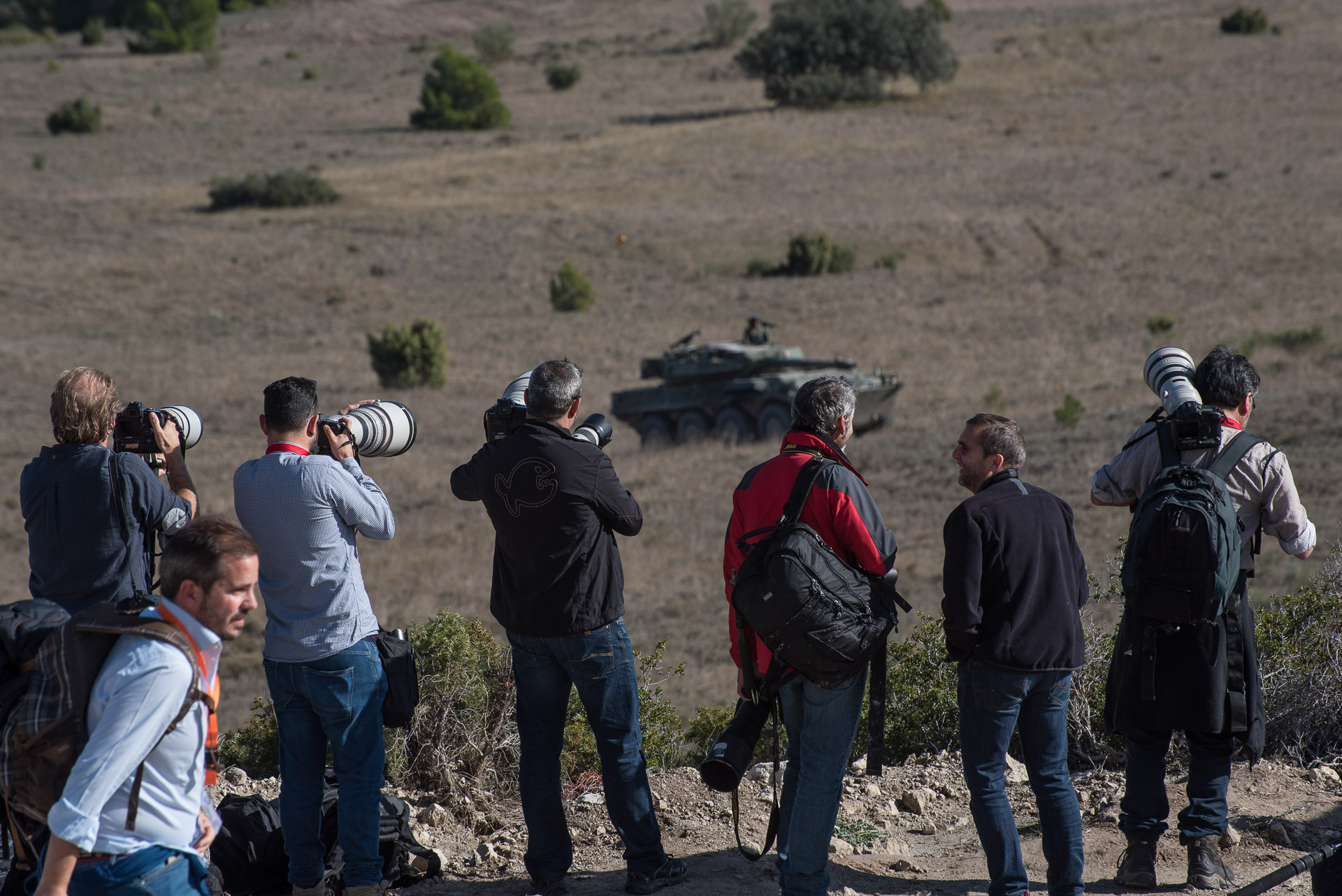 Los reporteros gráficos toman imágenes de uno de los blindados al final del ejercicio