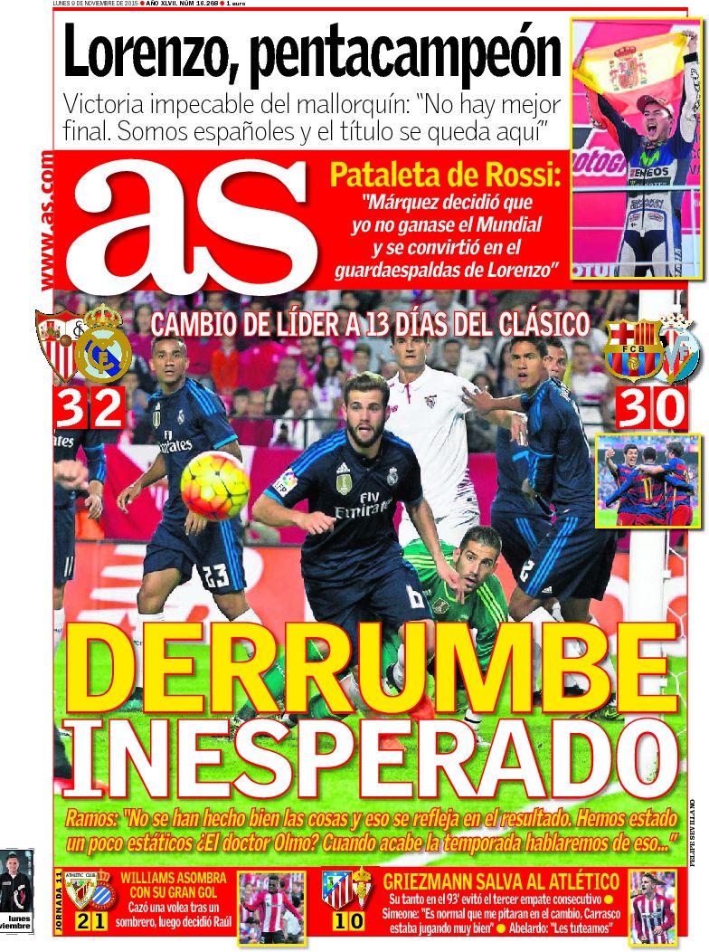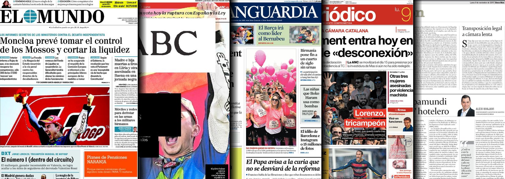 Portadas de los diarios ABC, As, Cinco Días, El Periódico y La Vanguardia.