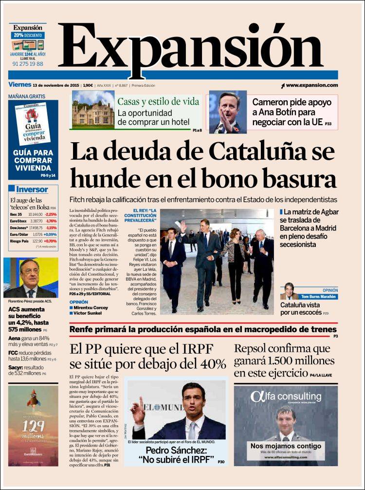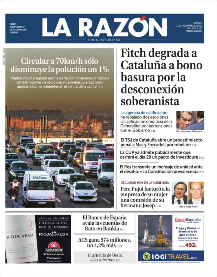 "Fitch degrada a Cataluña a bono basura por la desconexión soberanista"