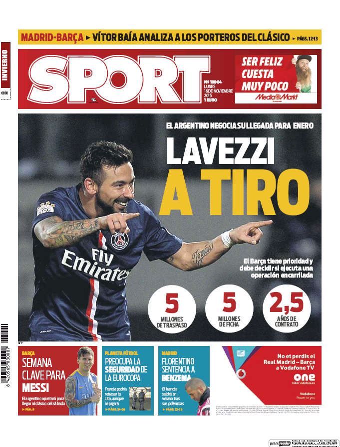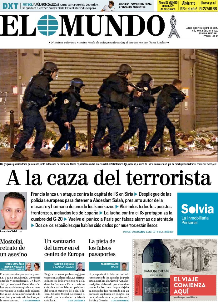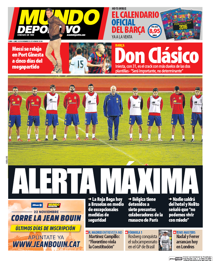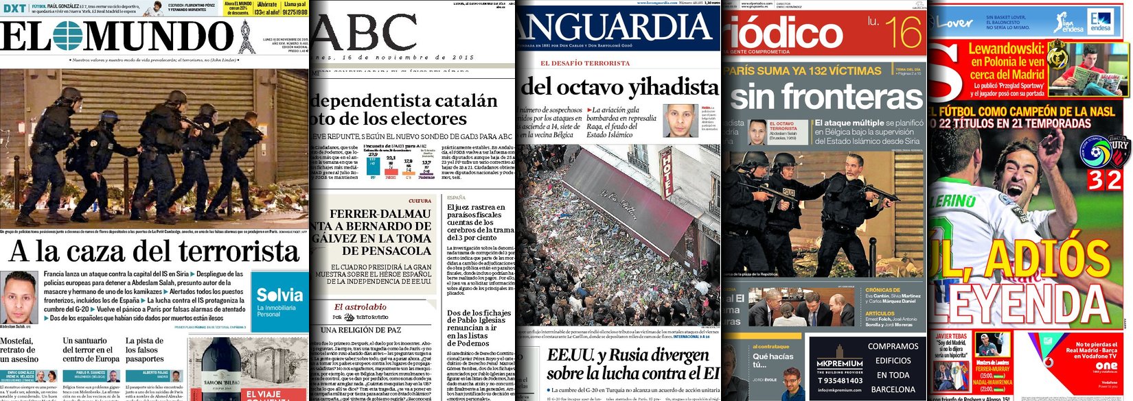 Portadas de los diarios El Mundo, El País, ABC, La Razón, La Vanguardia, El Periódico, Cinco Días, El Economista, Marca, As, Mundo Deportivo y Sport.