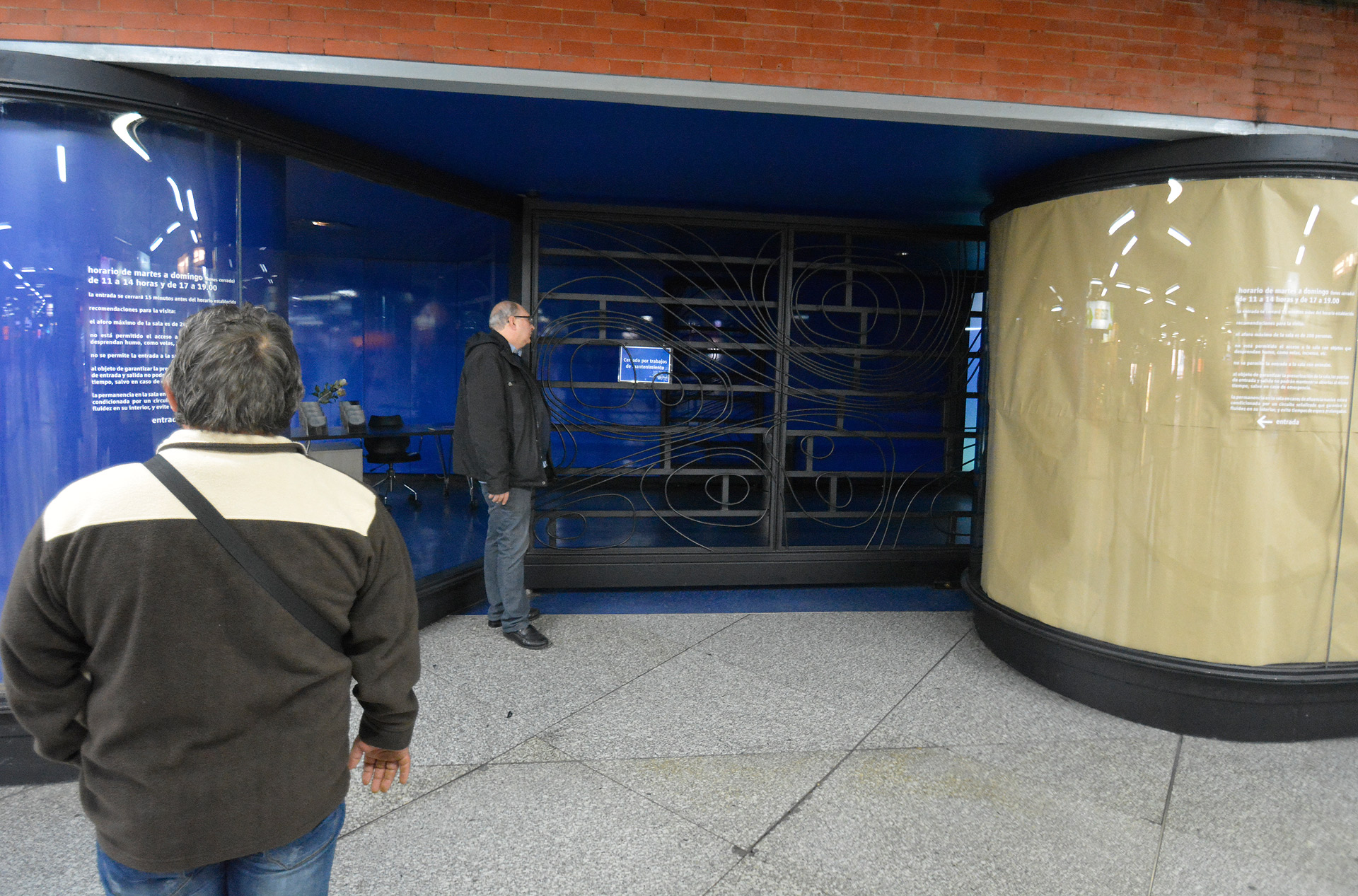 El monumento a las víctimas del 11-M, instalado en una sala ubicada en el lateral del hall superior de la Estación de Atocha en Madrid, ha sido cerrado y tapado completamente un después de comprobarse su estado de semiabandono y descuido. La explicación está colgada de su puerta: "cerrado por trabajos de mantenimiento".