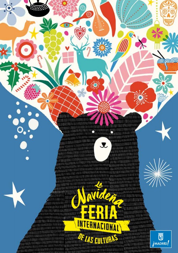 En Navidad, "Feria Internacional de las Culturas". En el cartel aparecen flores, pasta china, una piña, una tetera...