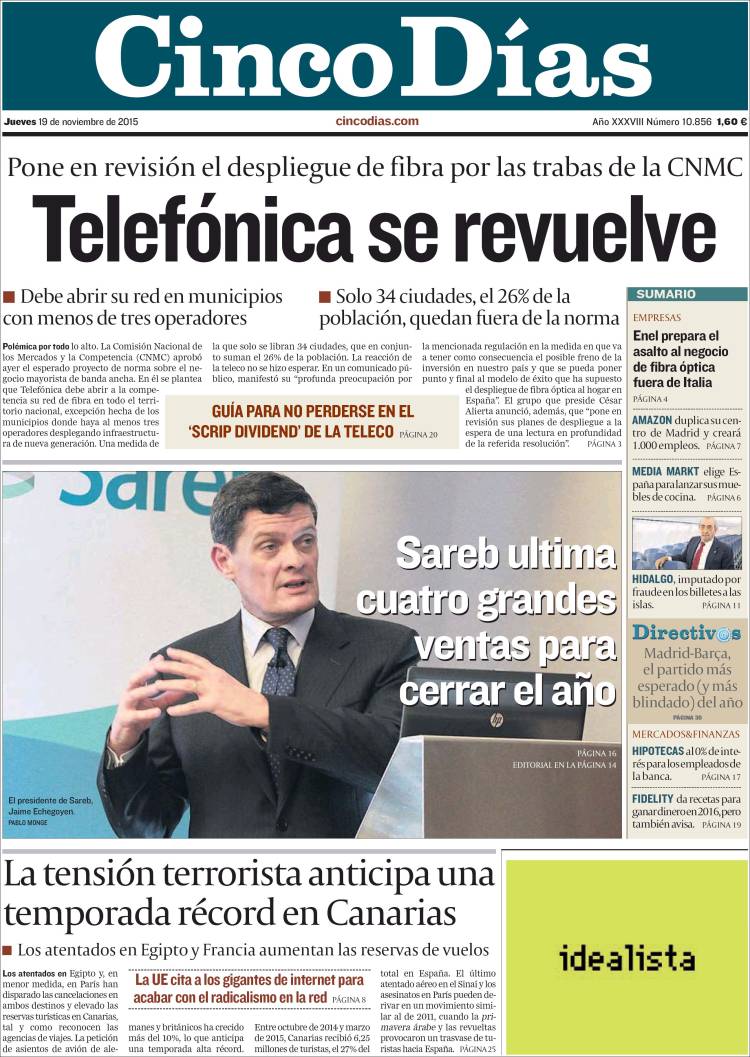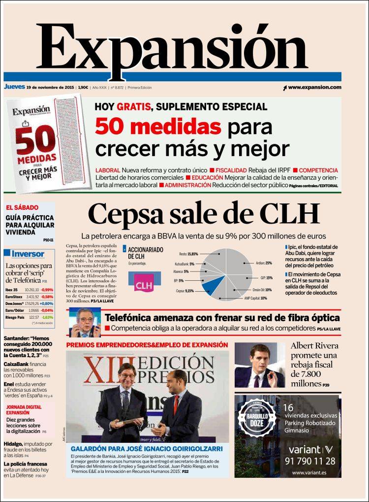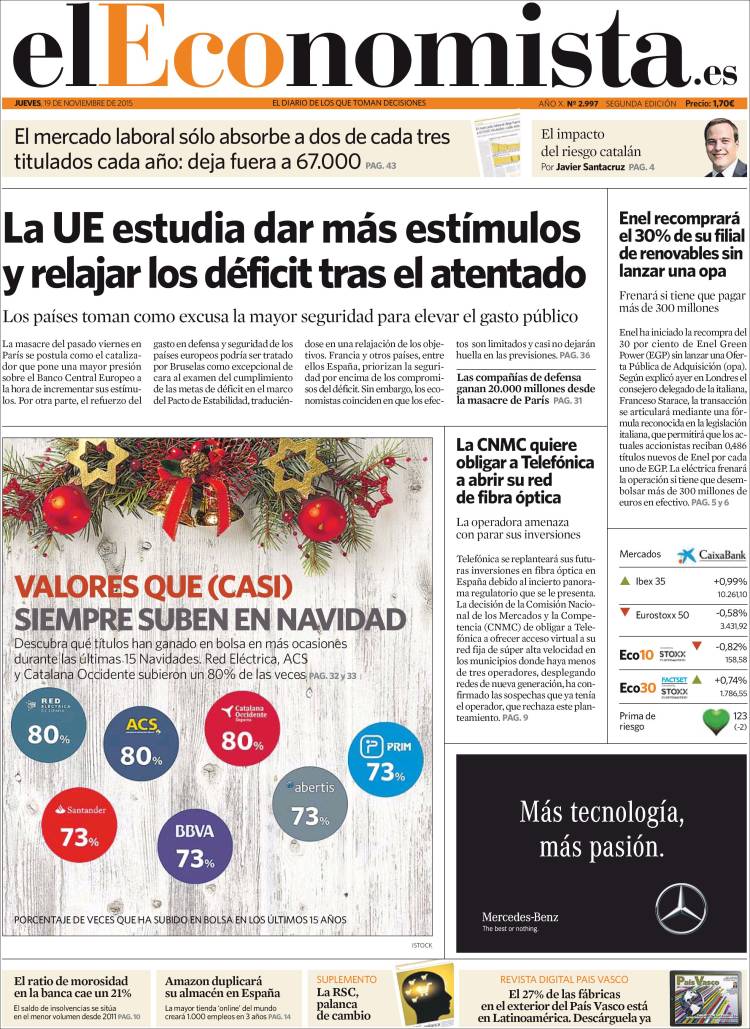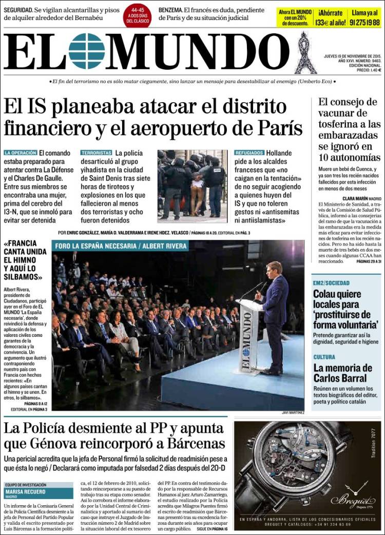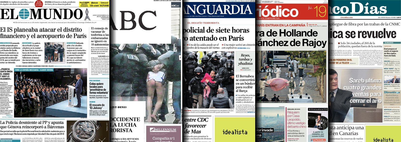 Portadas de los diarios El Mundo, El País, ABC, La Razón, La Vanguardia, El Periódico, Cinco Días, El Economista, Expansión, Marca, As, Mundo Deportivo y Sport.