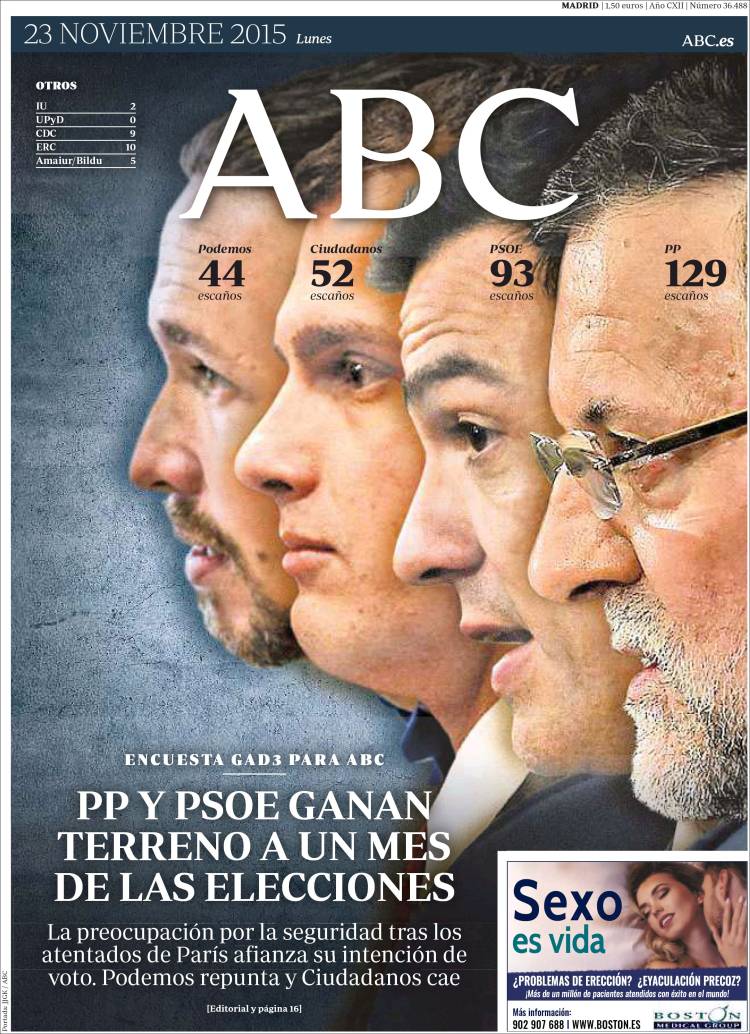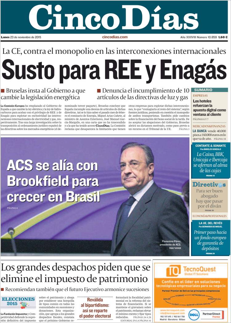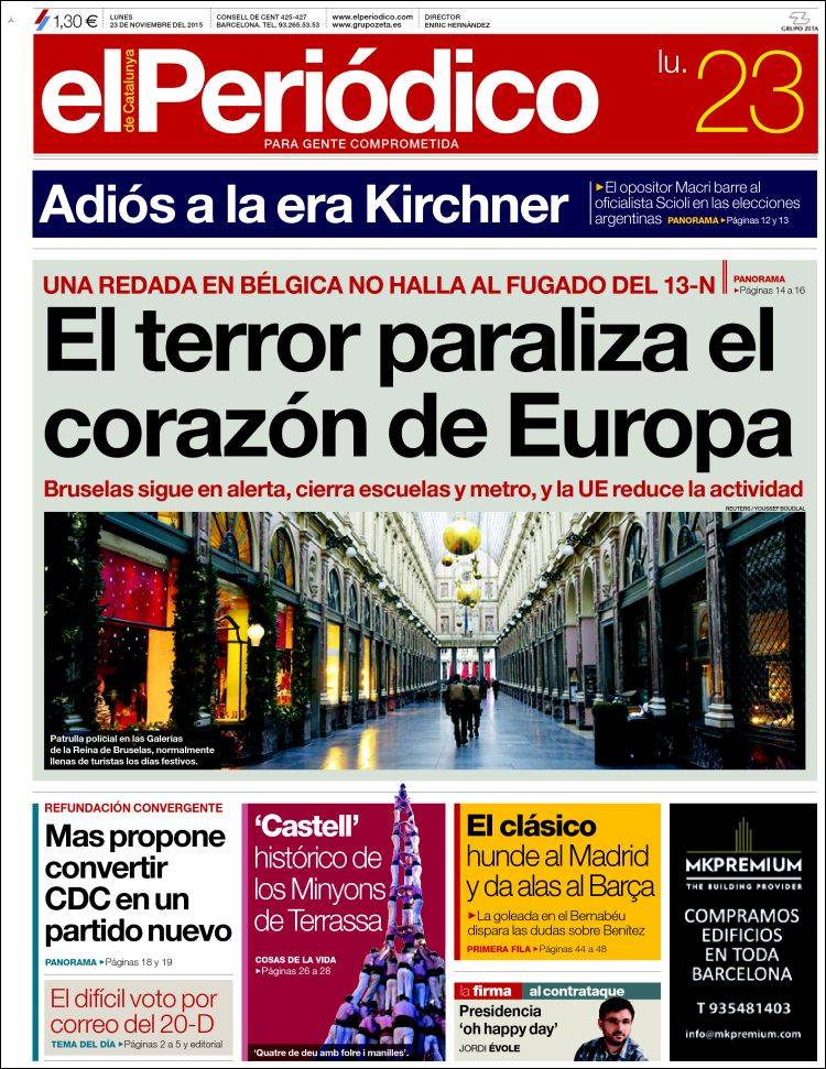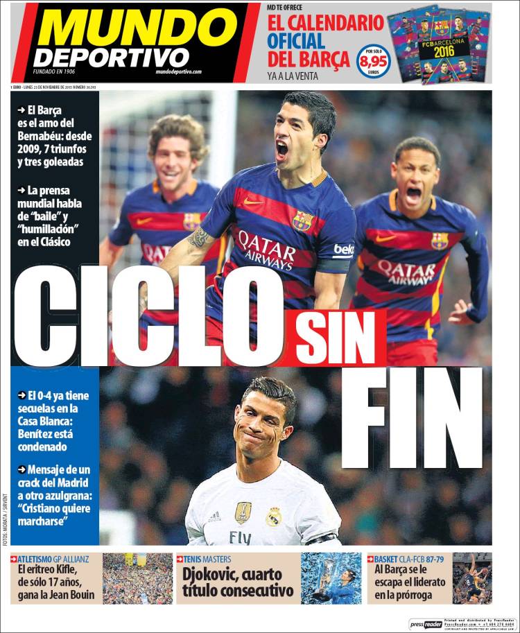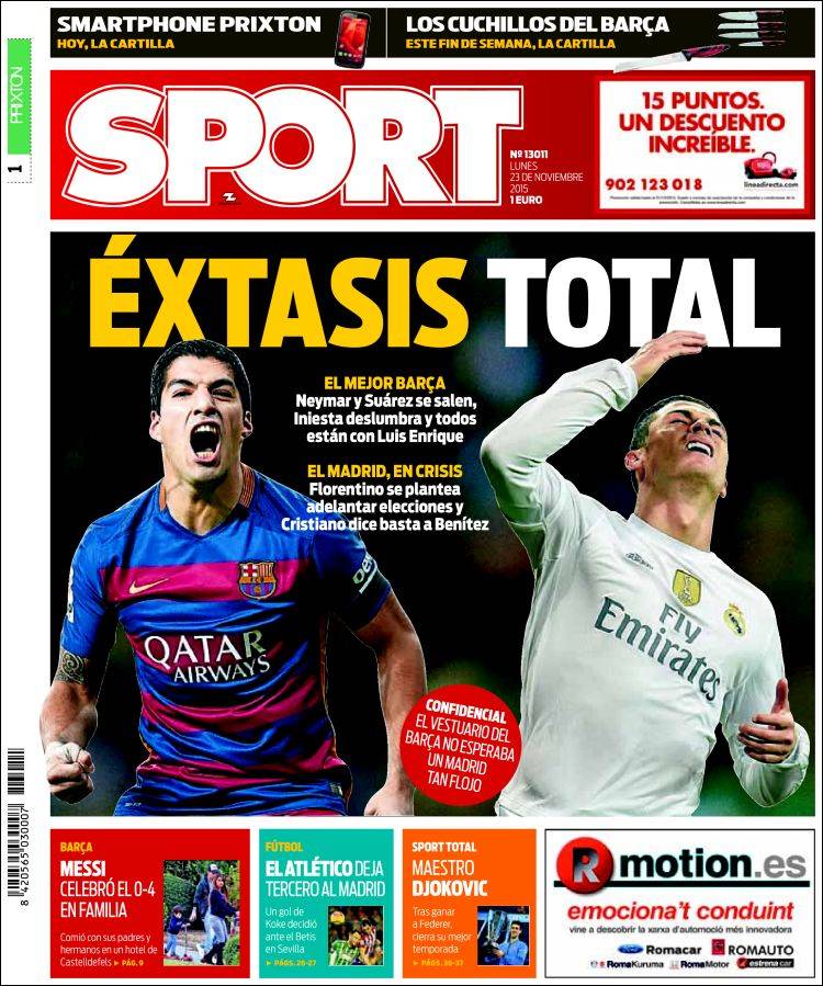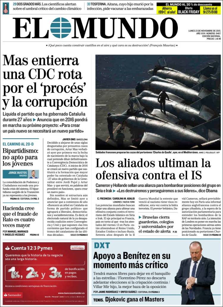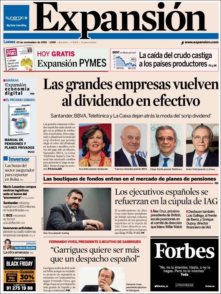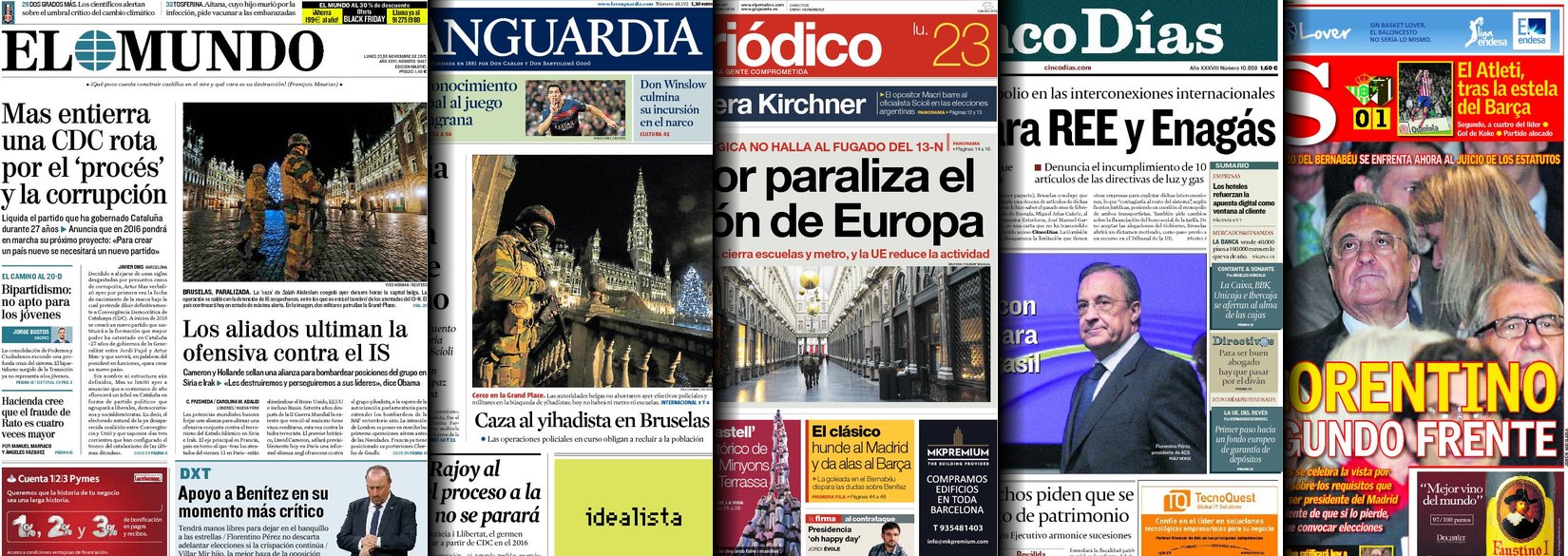 Portadas de los diarios El Mundo, El País, ABC, La Razón, La Vanguardia, El Periódico, Cinco Días, El Economista, Expansión, Marca, As, Mundo Deportivo y Sport.