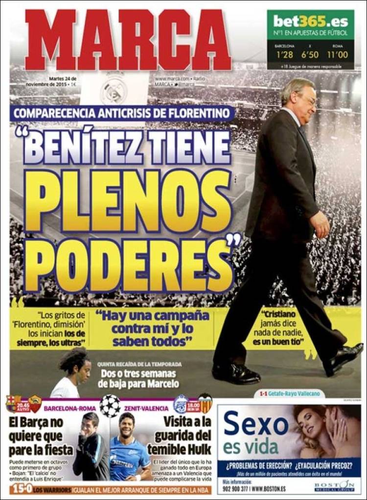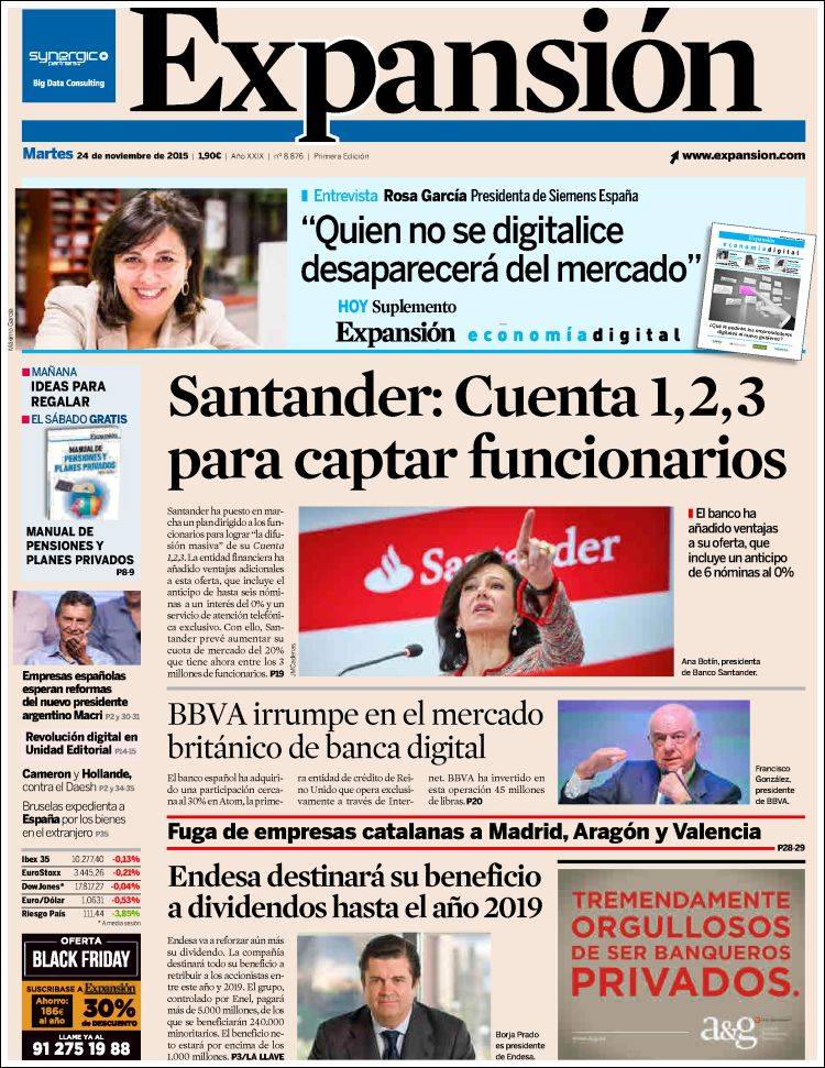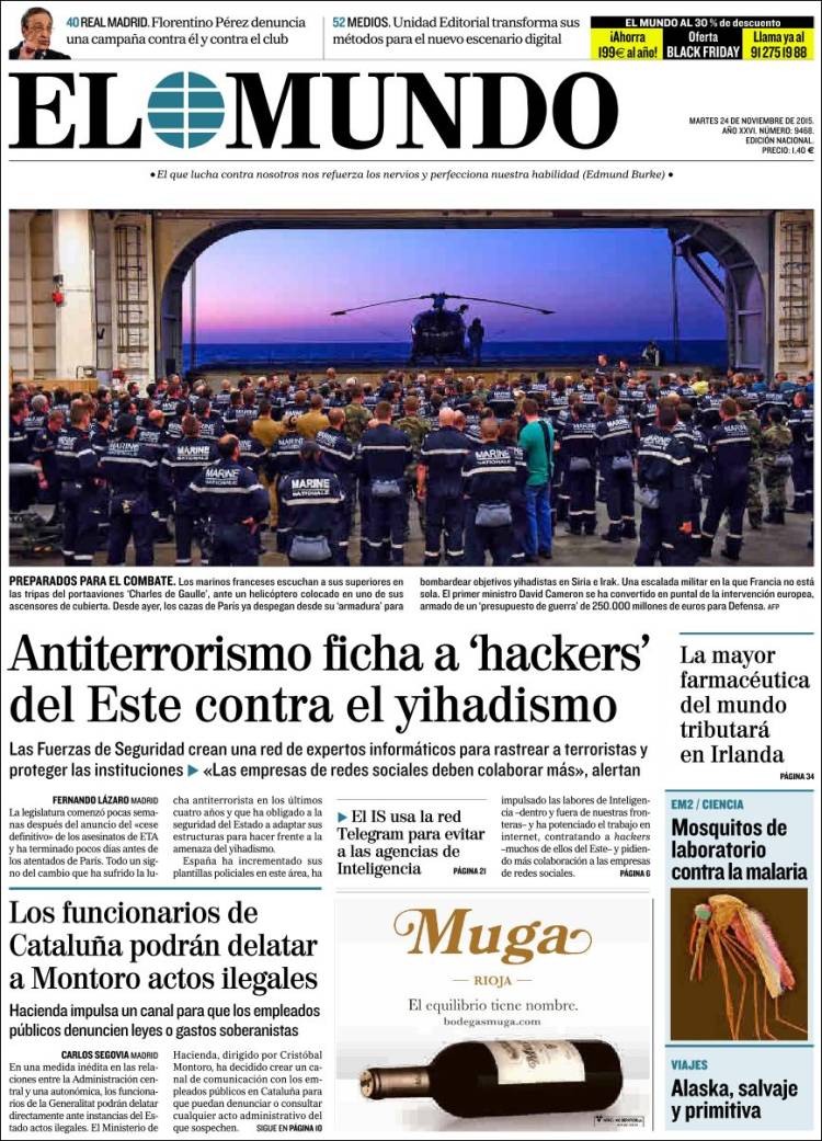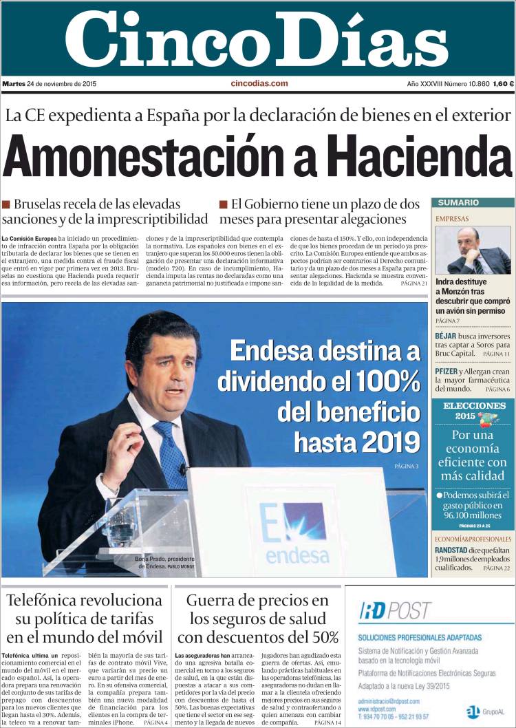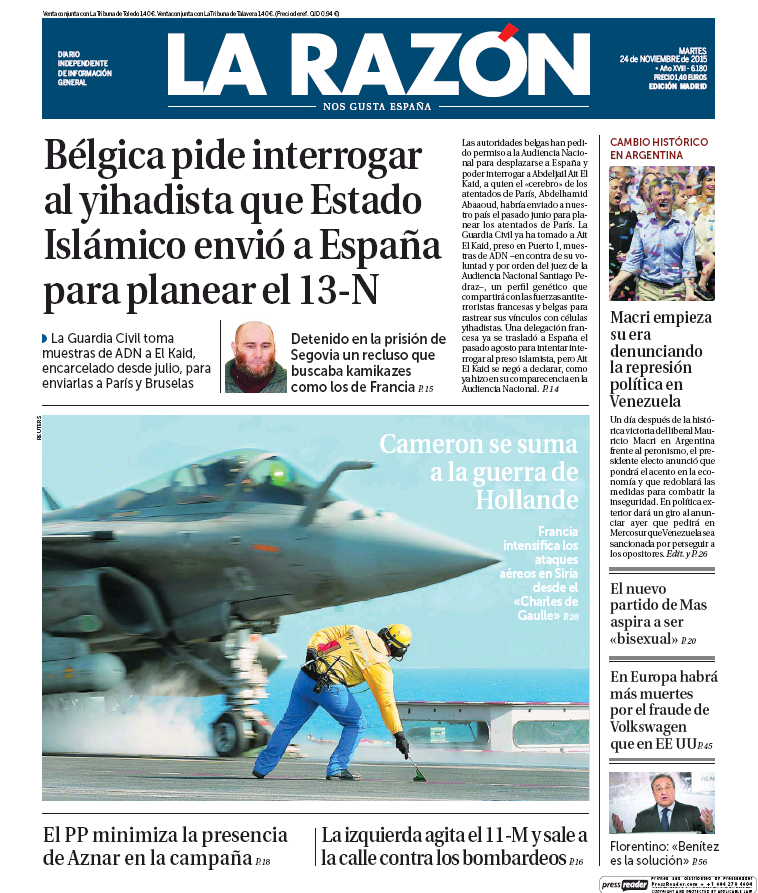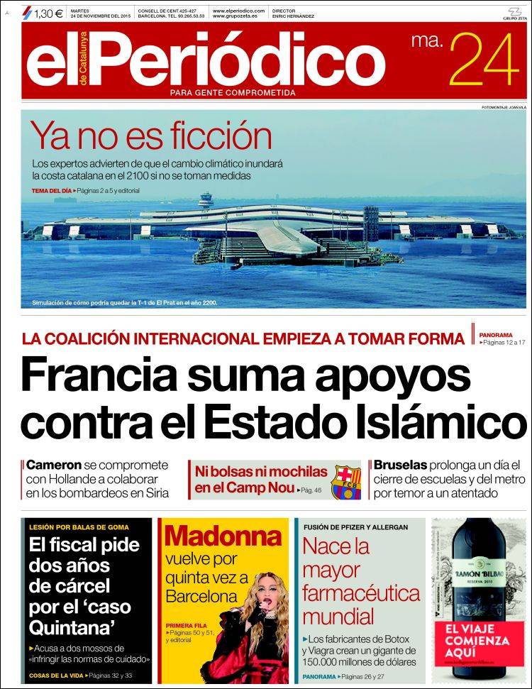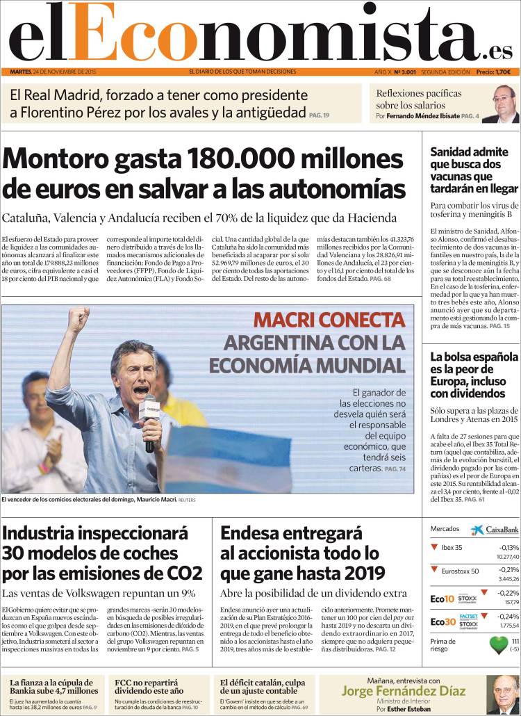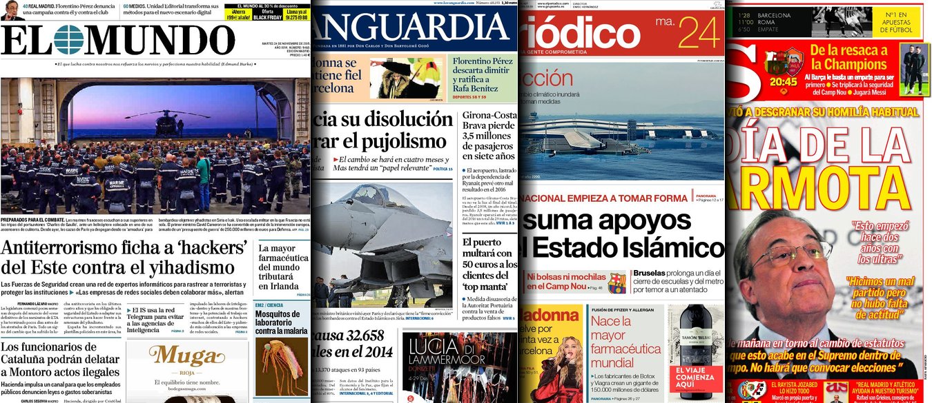 Portadas de los diarios El Mundo, El País, ABC, La Razón, La Vanguardia, El Periódico, Cinco Días, El Economista, Expansión, Marca, As, Mundo Deportivo y Sport.