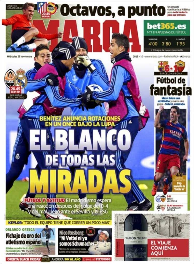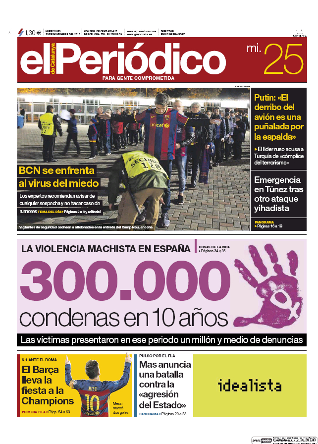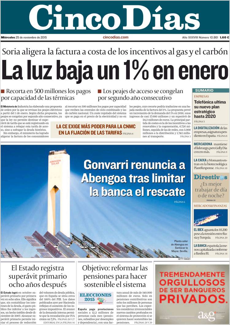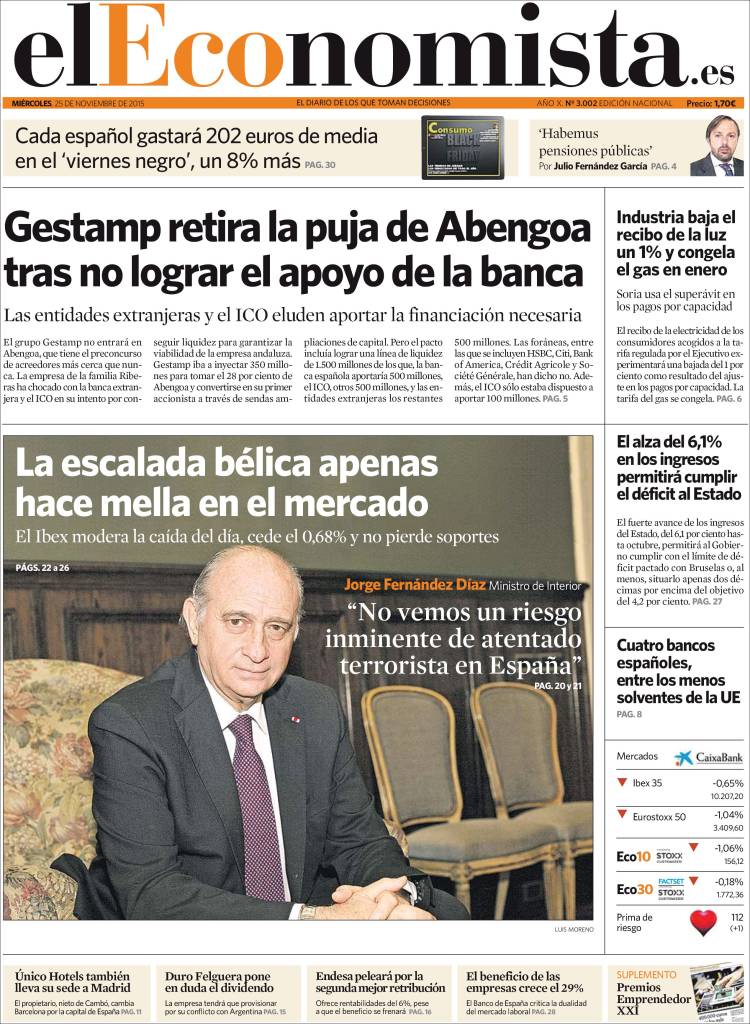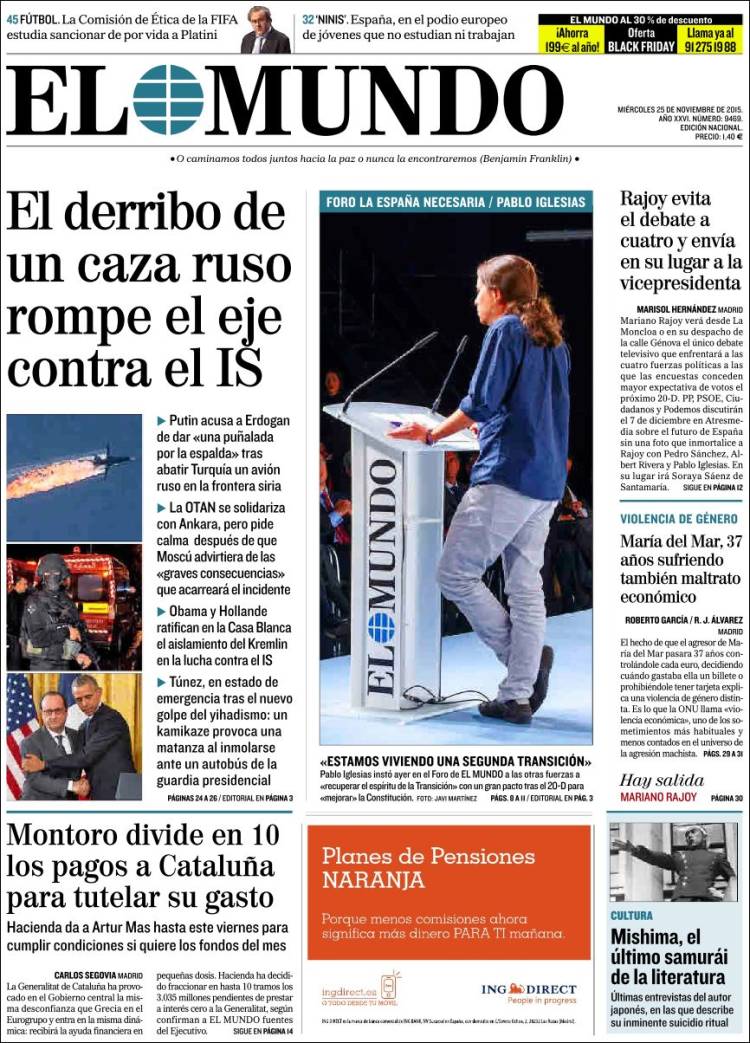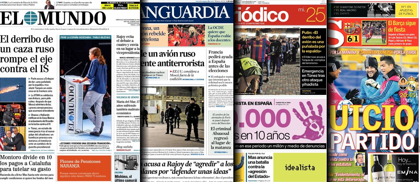 Portadas de los diarios El Mundo, El País, ABC, La Razón, La Vanguardia, El Periódico, Cinco Días, El Economista, Expansión, Marca, As, Mundo Deportivo y Sport.
