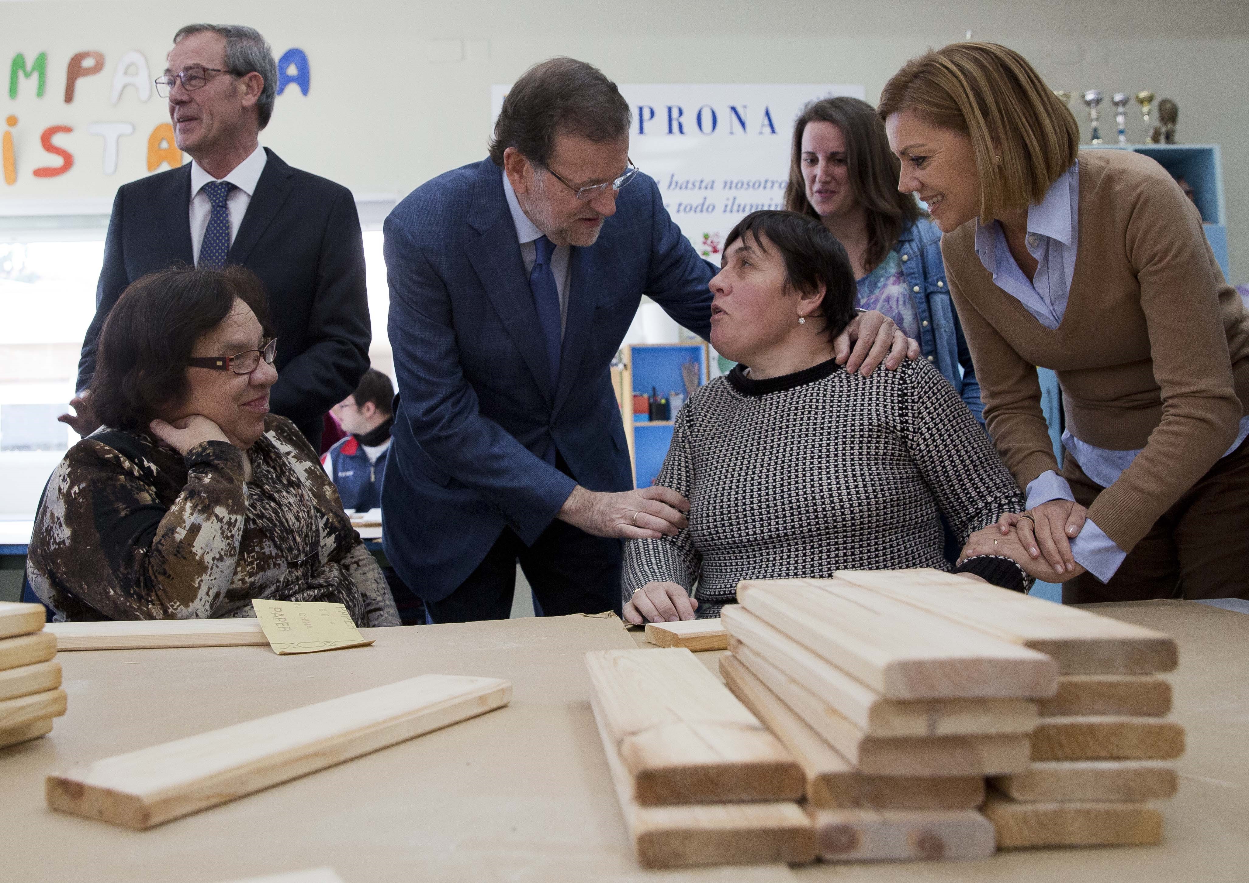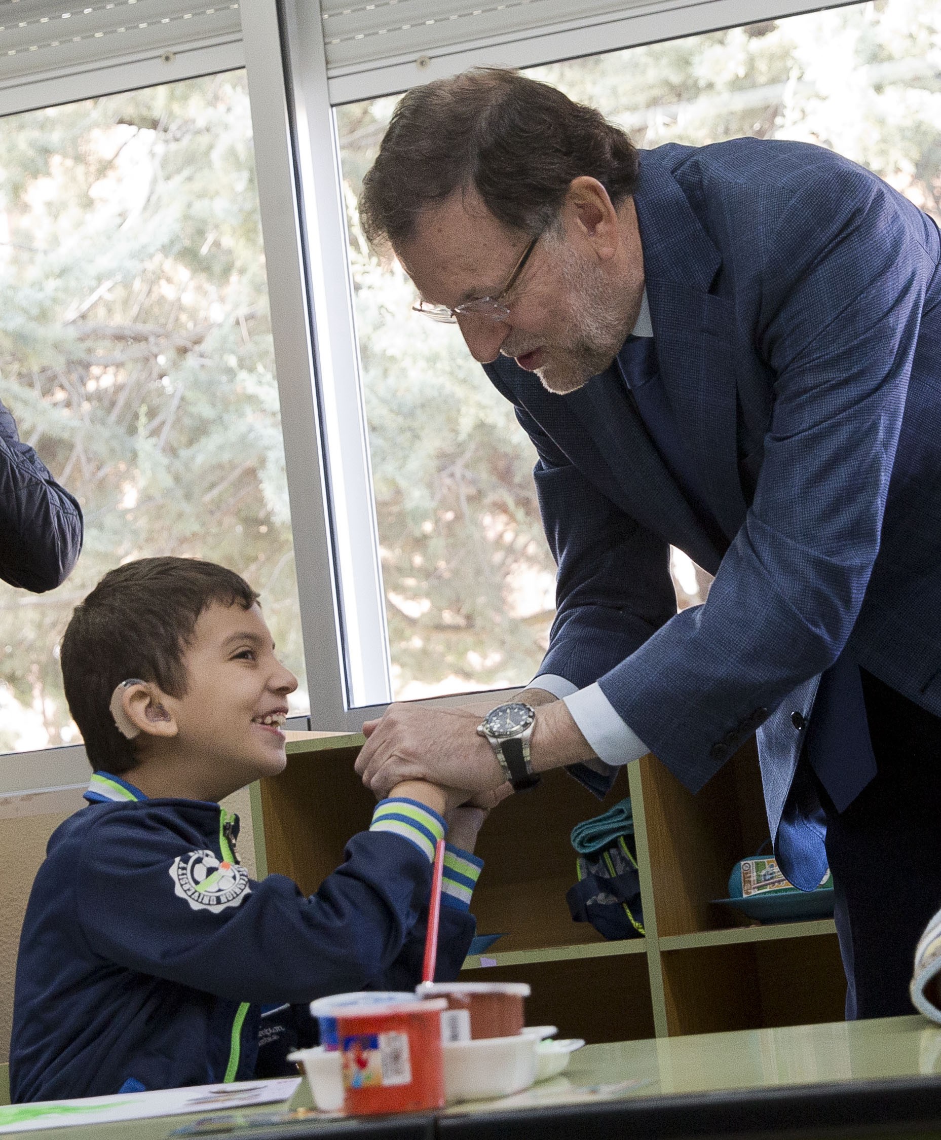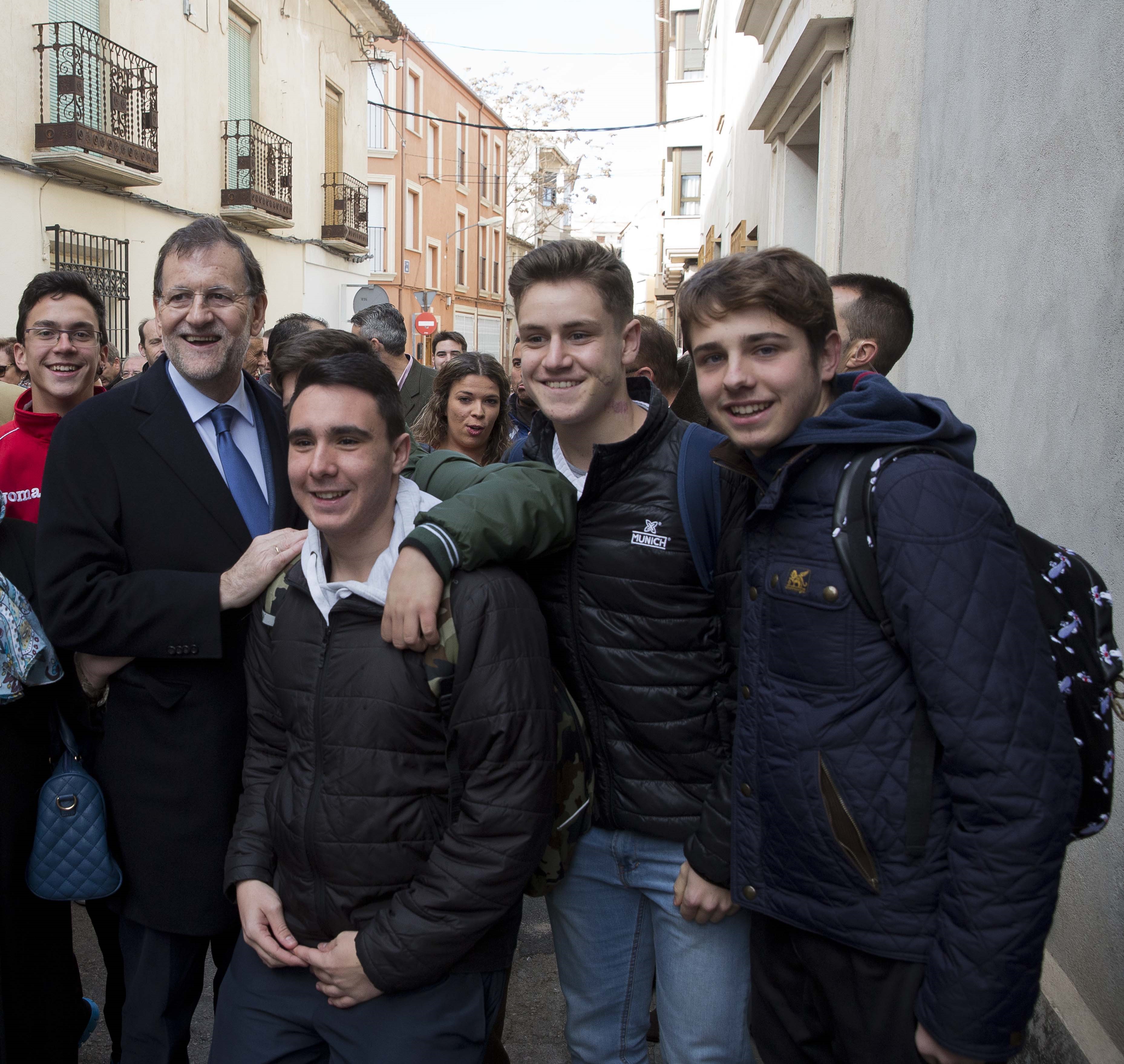 Rajoy y Cospedal charlan con los niños en su visita de campaña a La Roda.
