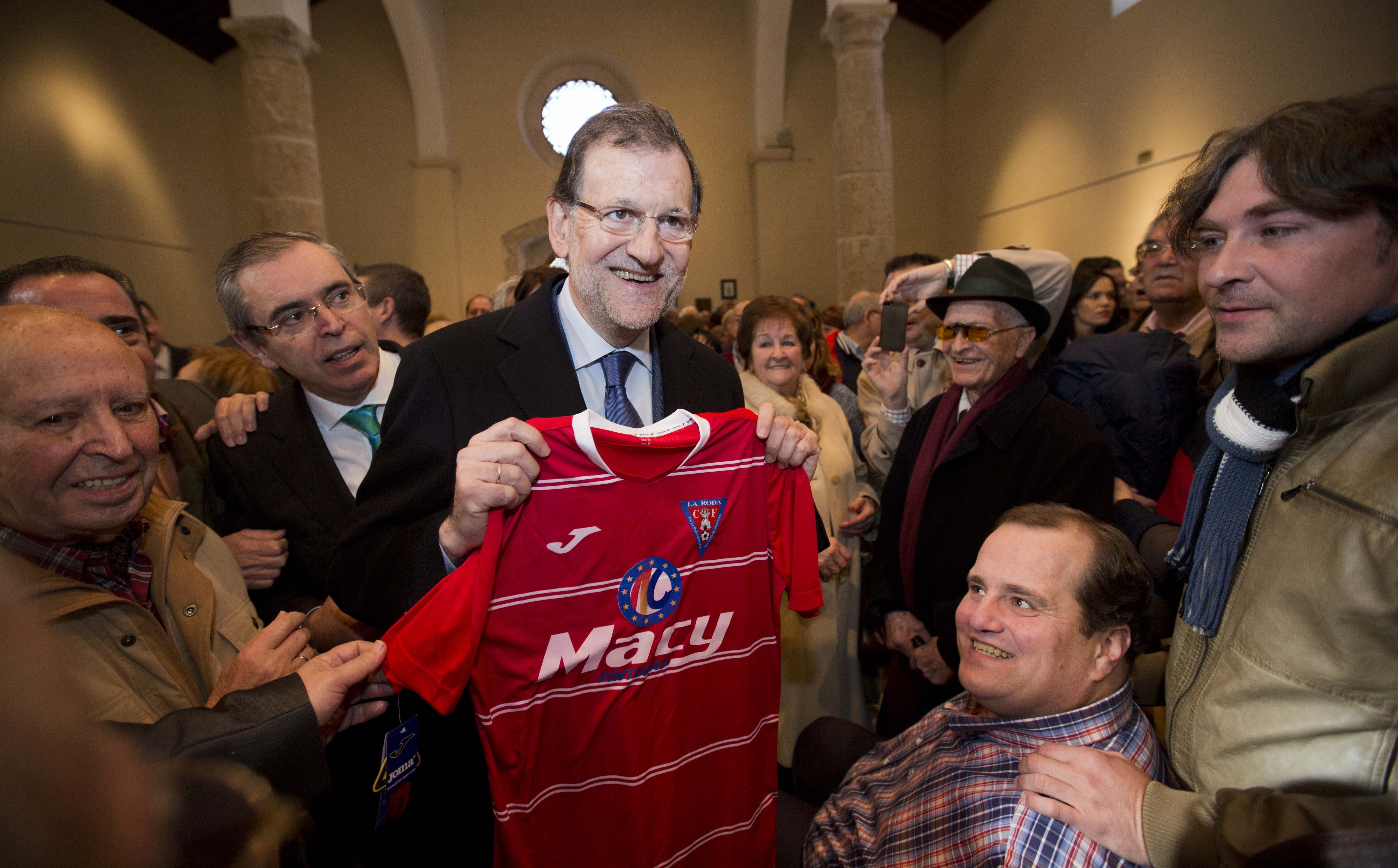 Rajoy, tan campechano, posa con la camiseta de fútbol del equipo local.