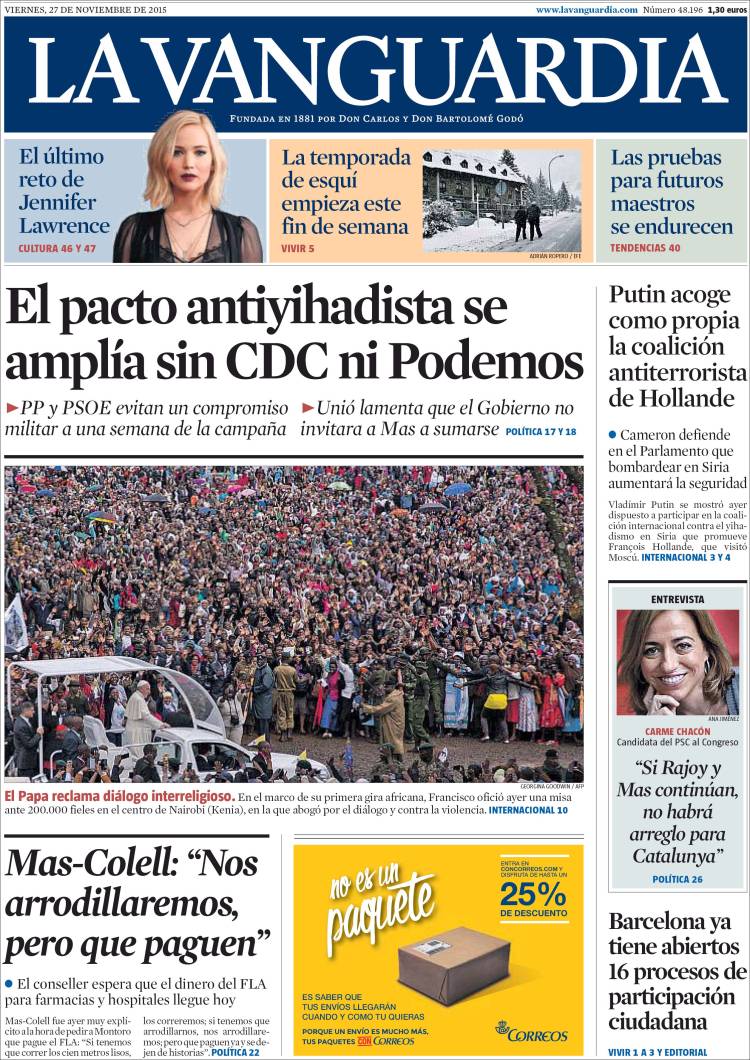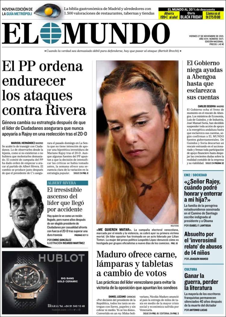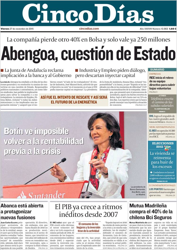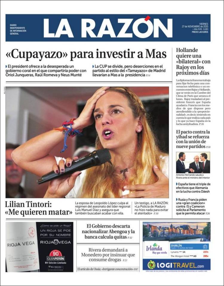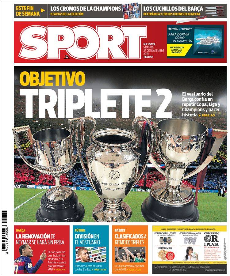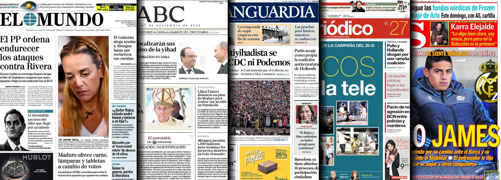 Portadas de los diarios El Mundo, El País, ABC, La Razón, La Vanguardia, El Periódico, Cinco Días, El Economista, Expansión, Marca, As, Mundo Deportivo y Sport.