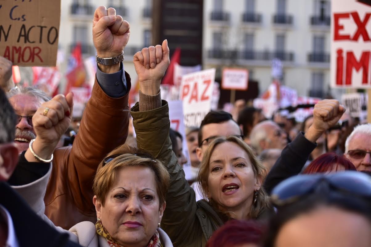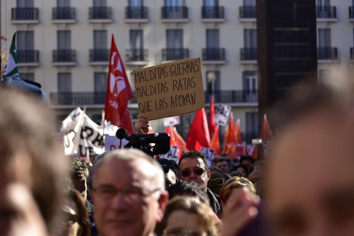Entre los lemas coreados destacó el de "Rajoy, Rivera, iros (sic) a la guerra".