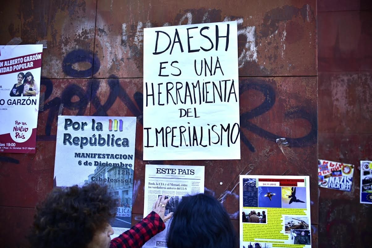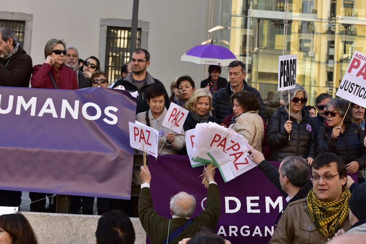 Ni actores, ni políticos relevantes, ni muchos ciudadanos. Los que secundaron el manifiesto contra la guerra a Estado Islámico en Siria apenas llenaron la plaza del Reina Sofía.